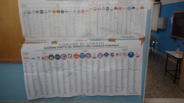 Home Amministrative 2020 Amministrative Corato: Dati definitivi affluenza elezioni comunali ha votato il 68,6%Amministrative 2020Amministrative Corato: Dati definitivi affluenza elezioni comunali ha votato il 68,6%By La redazione - 21 Settembre 20200CondividiFacebookTwitterTelegramWhatsAppEmailPrint Dati definitivi affluenza elezioni amministrative 68,60CITTADINI AVENTI DIRITTO AL VOTO:ELETTORIUOMINIDONNE43.35321.12322.23048.7 %51.3 %AFFLUENZA ALLE URNE:VOTANTIUOMINIDONNE29.75114.69015.06168.6 %49.4 %50.6 %