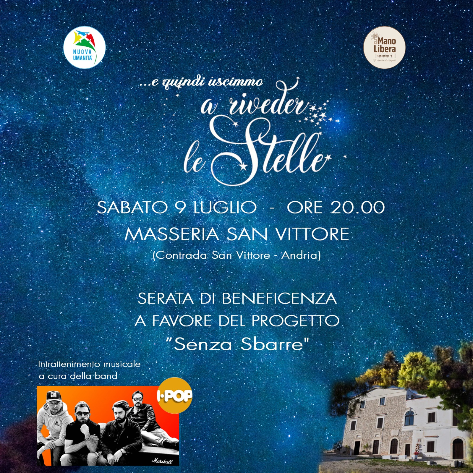 Questo è il titolo scelto per la serata di beneficenza, organizzata dall’associazione Nuova Umanità sabato 9 luglio 2022 ore 20,00, presso la masseria San Vittore di Andria.