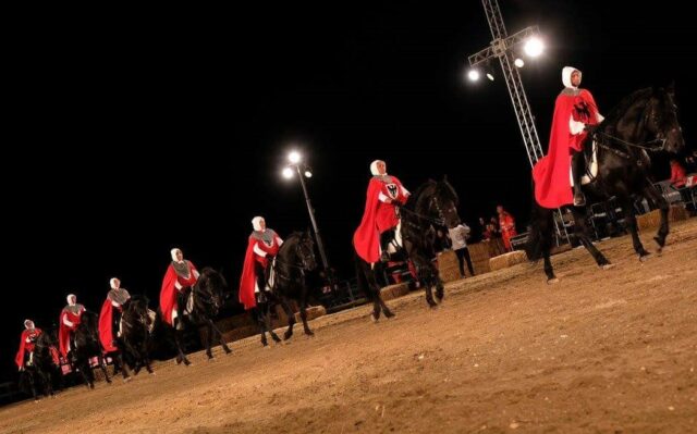 In un contesto per così dire “naturalistico” ma anche “ambientale” e “climatico”, è stato progettato un evento culturale ambientato nel XIII secolo, quando i parchi e i boschi della Murgia furono visitati anche dall’Imperatore Federico II di Svevia; un luogo situato nel punto d’incontro fra due grandi vie erbose, il Tratturo Canosa-Ruvo e il Tratturo Corato-Fontanadogna, ovvero nei pressi dell’attuale SP19 all’incrocio con la Strada Esterna Tratturello Pedale ( Accademia nazionale di arte equestre “Il nero luminoso” – Google Maps ). Figura emblematica del Duecento, Federico II frequentò queste zone intorno al 1240 e anche prima, quando visitò la fabbrica del castello di Trani (datato 1233).