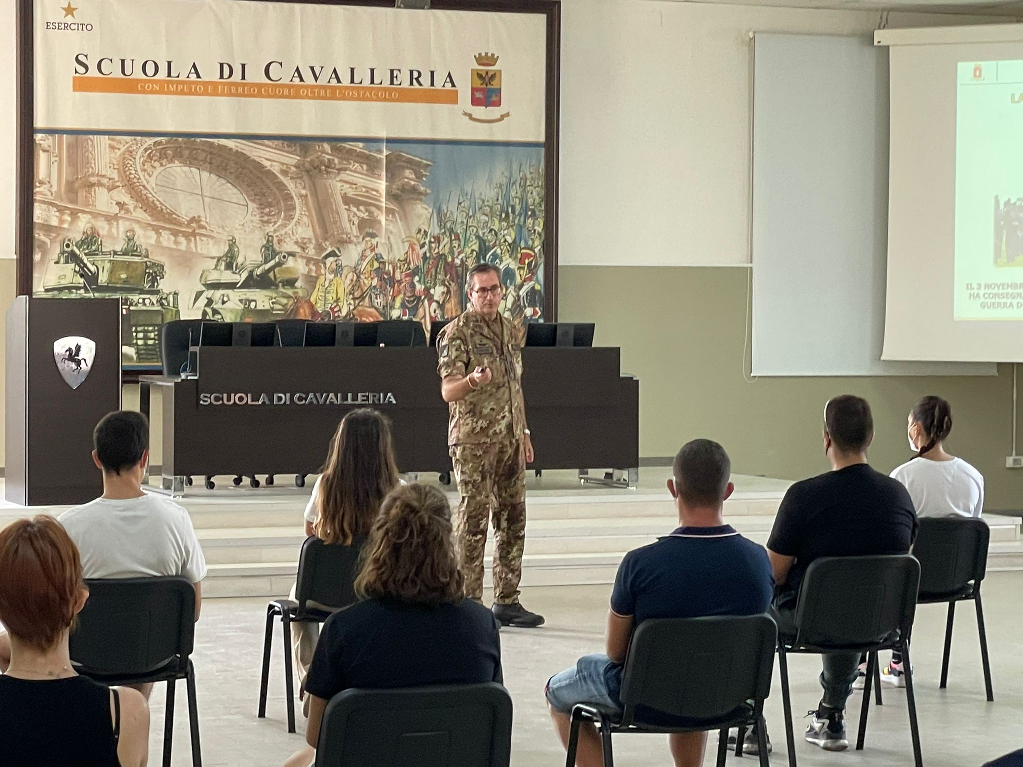 Al termine di un briefing con cui sono state descritte le attività operative, l’addestramento, la vita in caserma e le varie opportunità di carriera nell’Esercito, i partecipanti hanno avuto modo di visitare una mostra statica di mezzi e materiali in dotazione alla Cavalleria, partendo dal carro veloce “CV 33” sviluppato e impiegato già nel 1935 durante la guerra d’Etiopia, fino agli attuali Carro Armato “Ariete” e alla Blindo “Centauro” impiegati dagli uomini e dalle donne dell’Esercito nelle attività operative che vengono condotte sia in Italia sia all’estero.
