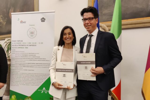 Nell’ambito dell’evento Premio Templum – Architetti Italiani, all’arch. Esther Tattoli è stata conferito un riconoscimento, insieme ad altri 100 architetti italiani, con la pubblicazione di un suo lavoro nel prestigioso volume “Architetti Italiani II Edizione”, a cura della casa editrice RDE e della associazione Liber, con il patrocinio del Ministero delle Infrastrutture, del Ministero della Cultura e del Ministero dell’Ambiente e dell’Ordine Nazionale degli Architetti.