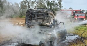 (Foto) Auto in fiamme in via vecchia Bisceglie