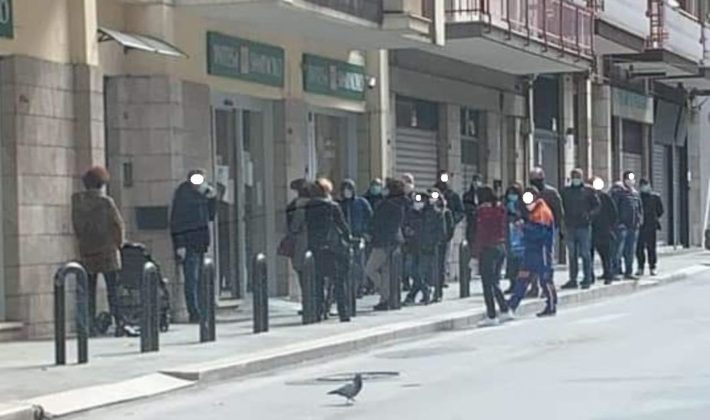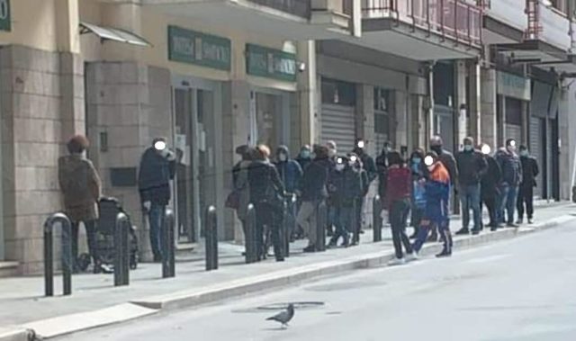 Fin dalle prime ore del giorno, infatti, lunghe file composte anche da una decina di persone, affollano i marciapiedi all’ingresso di supermercati, banche, uffici postali e tabaccherie, suscitando turbamento in coloro che sono chiamati comunque a garantire il proprio servizio a stretto contatto con il pubblico, tra mille perplessità e paura di contagio.
