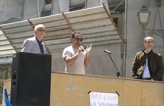 Dopo un iniziale momento di tensione per la presenza di partecipanti volutamente senza mascherina e le forze dell’ordine che li invitavano ad indossarla, sul piccolo palco il moderatore ing. Giuseppe Maiorano, ricercatore e realizzatore del progetto “ Il mondo che voglio” ha spiegato che ha sparso semi di consapevolezza, da diffondere, poiché la realtà è diversa da quella che ci raccontano, specialmente i media, poiché radio, giornali e TV diffondono notizie del “sistema ufficiale”, mentre tantissime ricerche rimangono sconosciute alla maggioranza della popolazione, che ha diritto alla libertà, anche di informazione e che venga concretamente riconosciuta la sovranità del popolo.