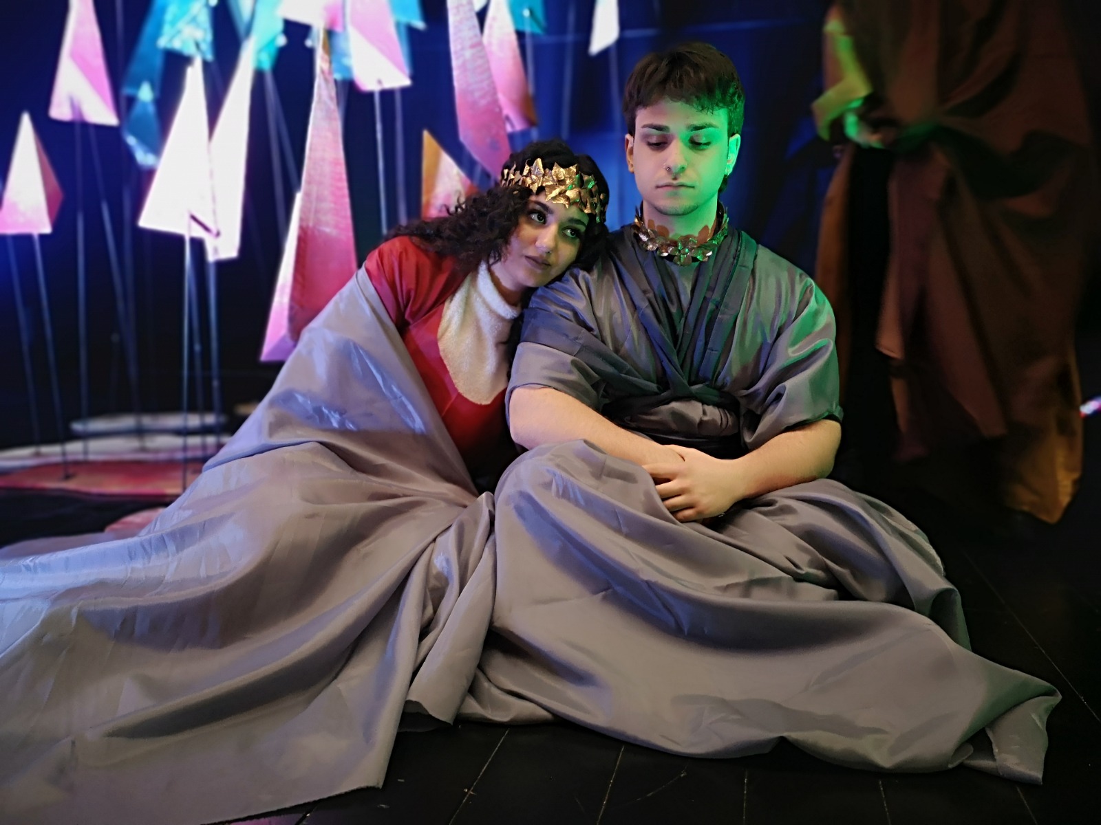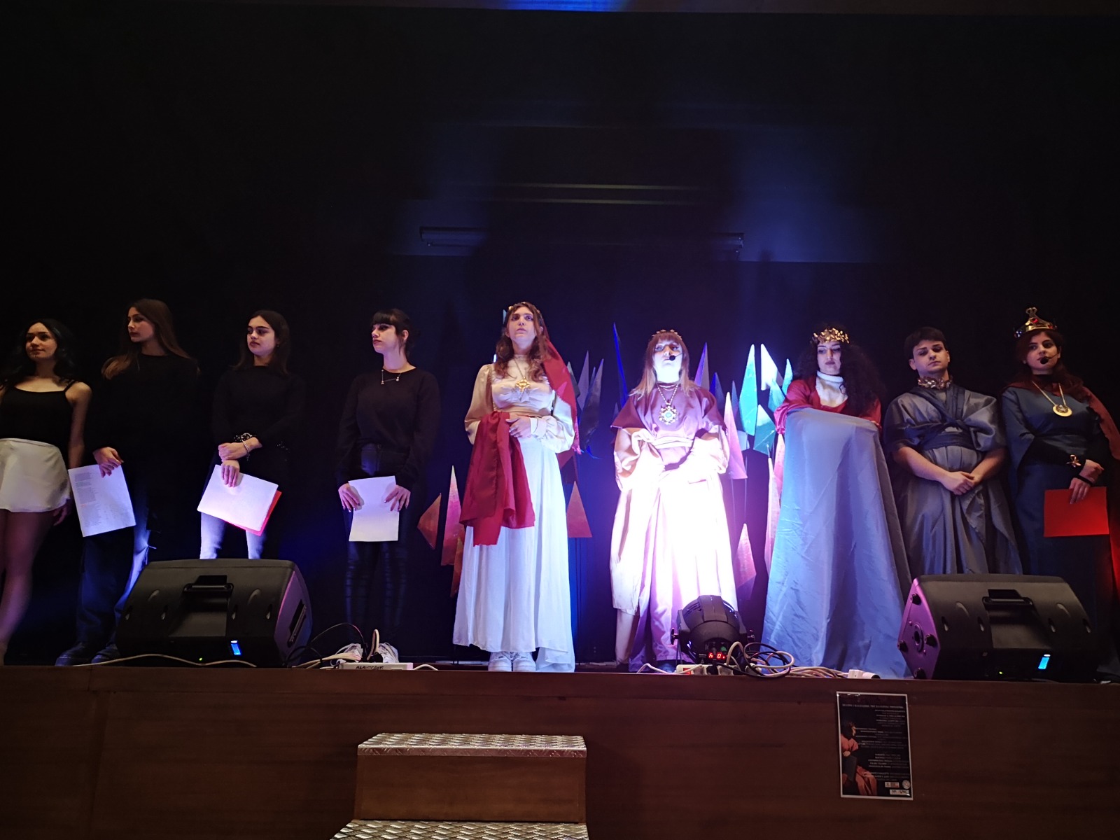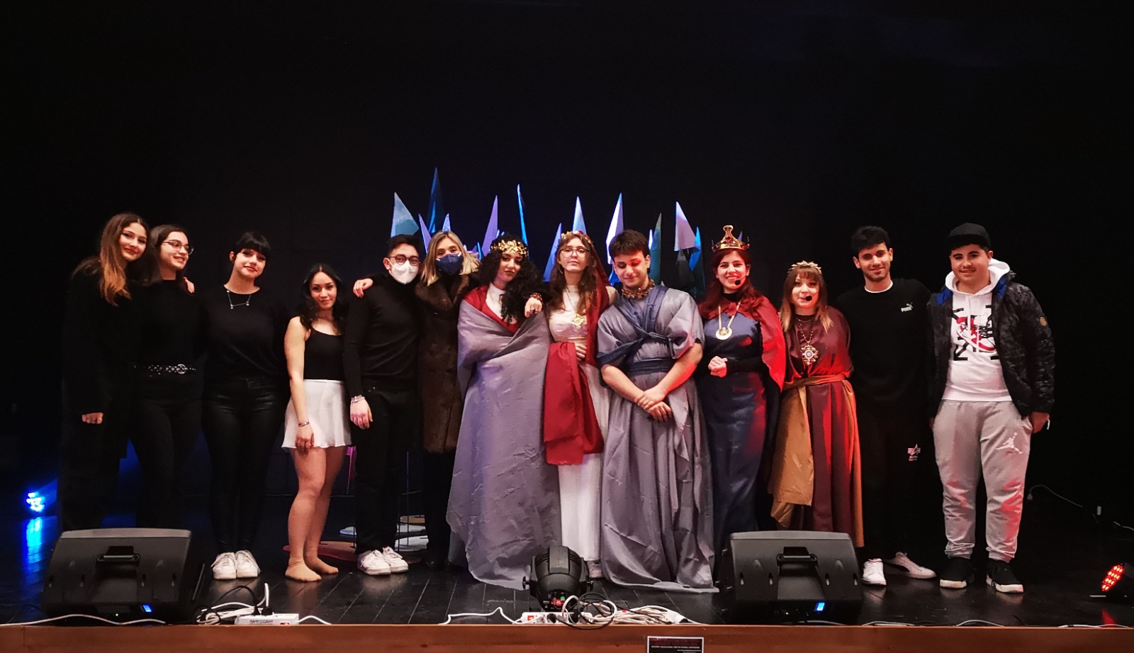 Non simulacri, bensì figure vive nella loro sofferenza, speranza, esultanza, in grado di parlare al mondo, pronte a risvegliare emozioni e riflessioni, anche attraverso l’essenziale scenografia e i costumi di scena, realizzati dal prof. Emanuele Pastoressa e dagli studenti della classe V C, compreso i magnifici gioielli, opera degli alunni della sezione Design Metalli e Oreficeria guidati dal prof. Leonardo Fiore.