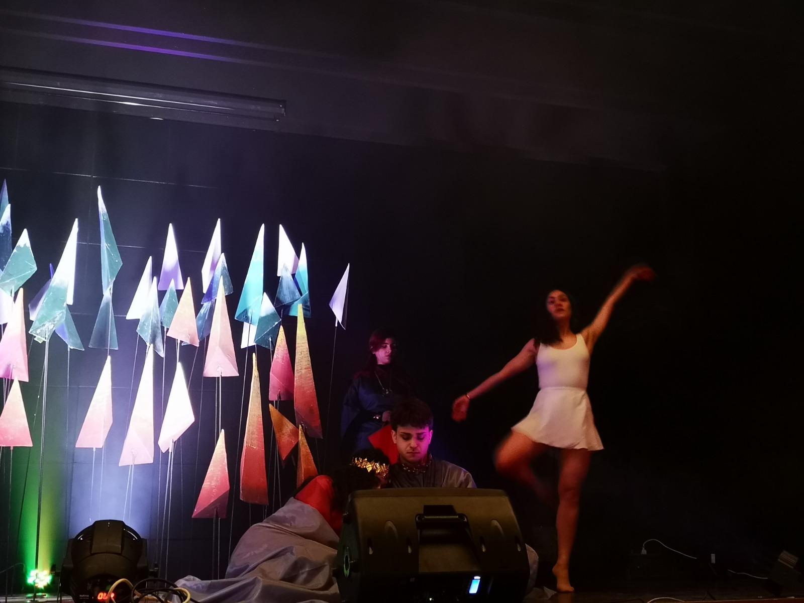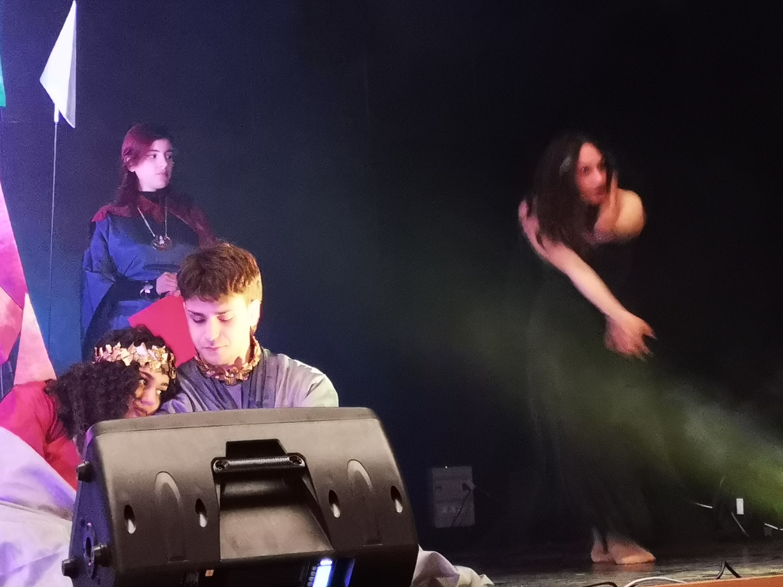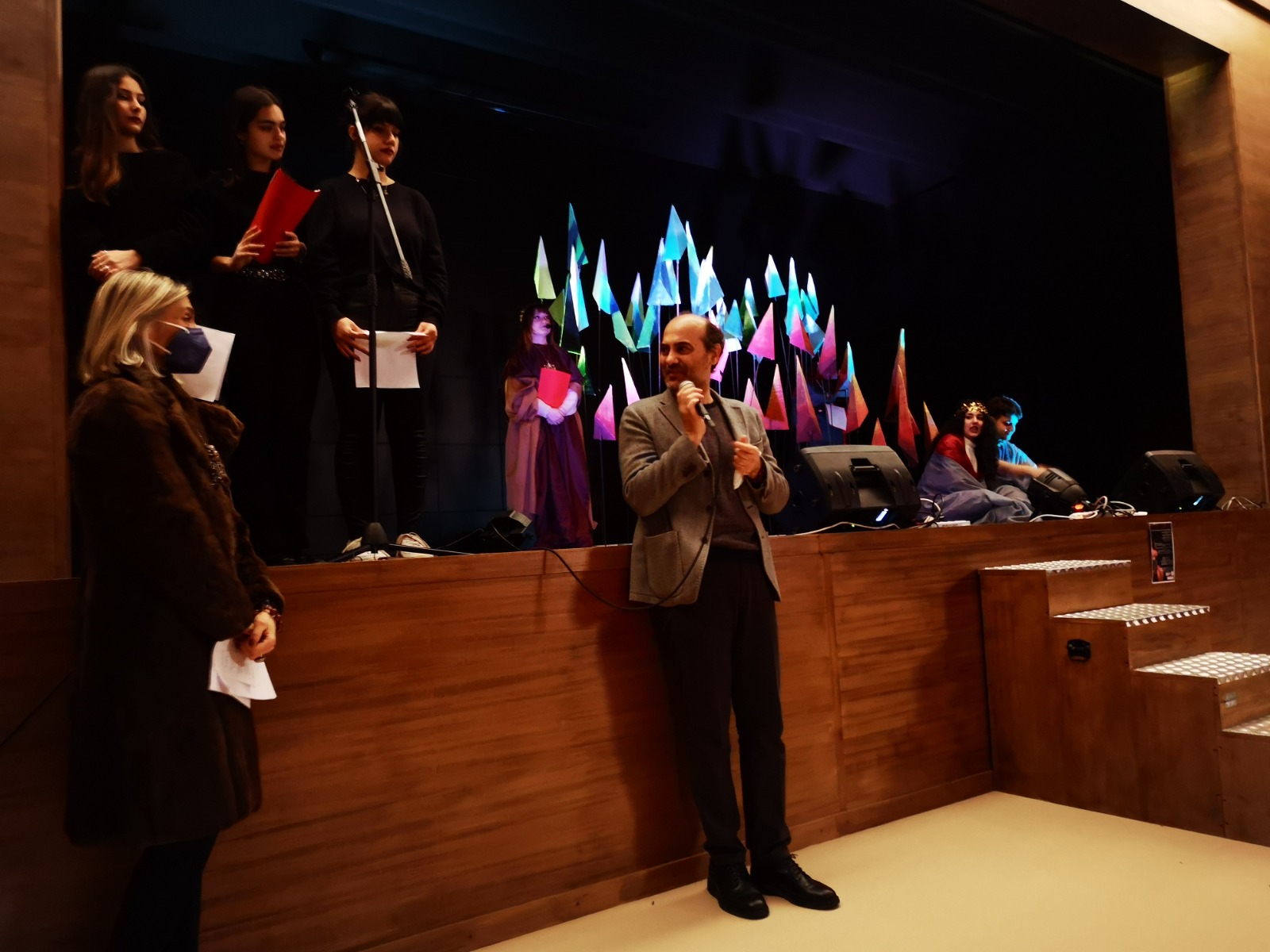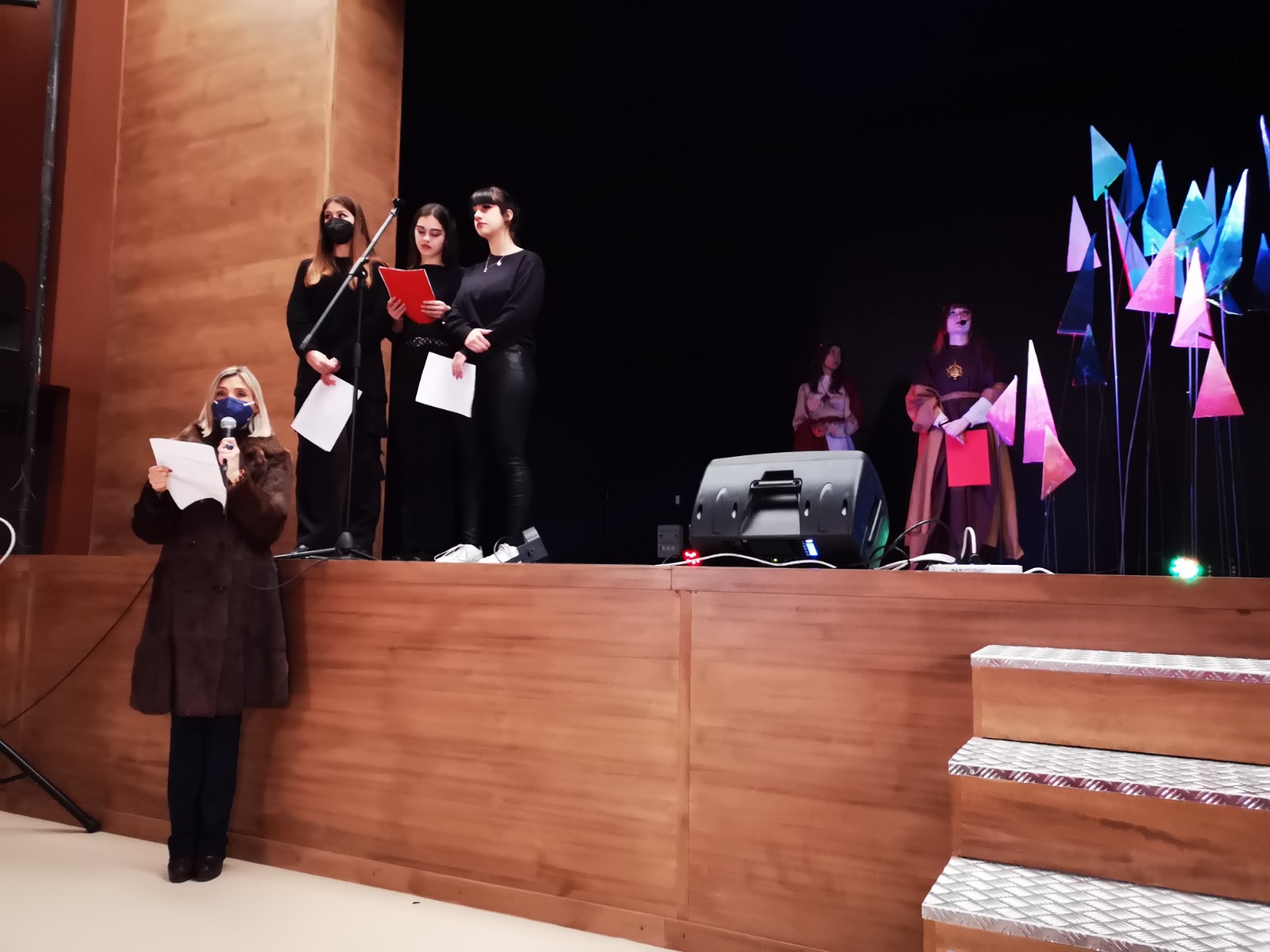 Non simulacri, bensì figure vive nella loro sofferenza, speranza, esultanza, in grado di parlare al mondo, pronte a risvegliare emozioni e riflessioni, anche attraverso l’essenziale scenografia e i costumi di scena, realizzati dal prof. Emanuele Pastoressa e dagli studenti della classe V C, compreso i magnifici gioielli, opera degli alunni della sezione Design Metalli e Oreficeria guidati dal prof. Leonardo Fiore.