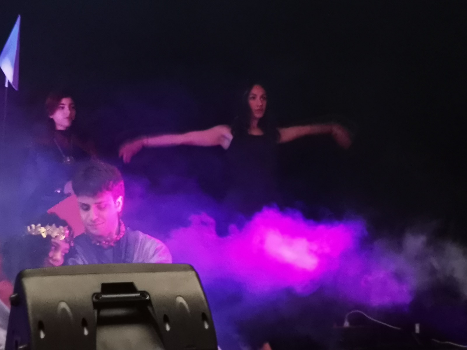 Protagonisti della performance teatrale e coreutica: Caronte (Pierluigi Calò), per nulla mostruoso, che sostiene teneramente il capo di Francesca da Rimini (Grazia Santoro) eroina d’amore, simbolo di libertà e emancipazione, femminista ante litteram; Beatrice (Claudia Porro) silenziosa, “venuta a miracol mostrare” con lo sguardo; Costanza d’Altavilla, oggetto della violenza psicologica che ancora oggi le donne subiscono; Pia dei Tolomei (Denise Di Gennaro) brutalmente assassinata dal marito, a ricordare i femminicidi di cui sono vittime.