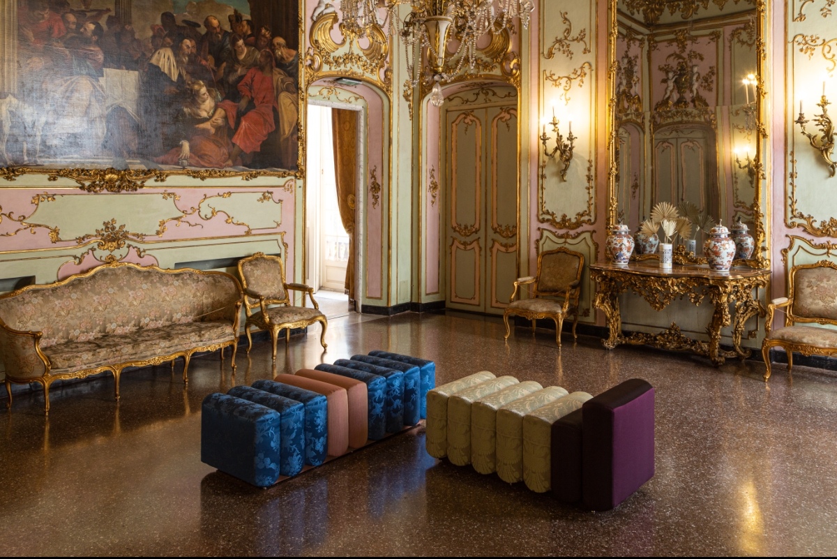 La seconda modalità espositiva è mimetica e vede il segno di Vito Nesta infiltrarsi tra le stanze del museo, dando vita a un sottile gioco di rimandi e mimesis. L’esperienza si snoda lungo le sale finemente decorate di stucchi e affreschi, dove l’osservatore si trova inconsapevolmente a ricercare e scoprire gli oggetti realizzati dal designer.