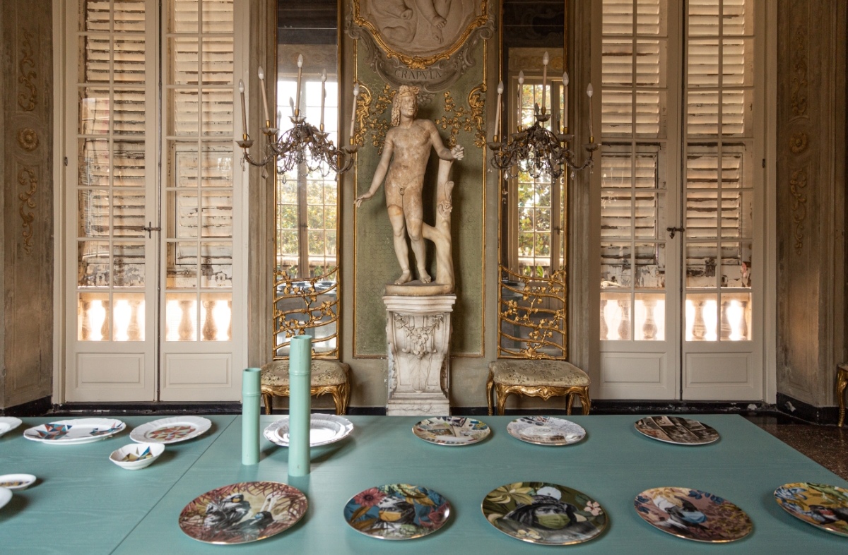Il percorso di mostra si snoda attraverso tracciati paralleli che mostrano il lavoro del designer in due distinte modalità espositive che ripercorrono, da un lato, il vissuto durante i giorni del lockdown e, dall’altro, omaggiano la dimora genovese attraverso oggetti e arredi contemporanei messi in dialogo con i pezzi storici del museo.