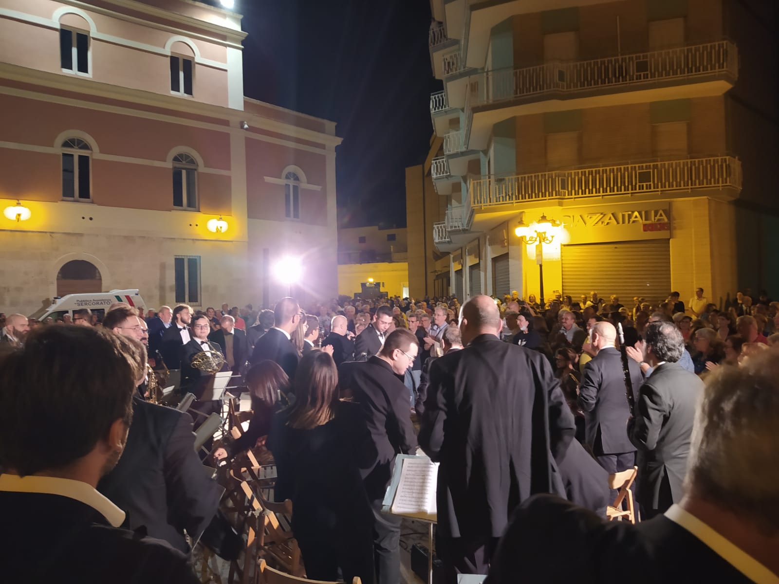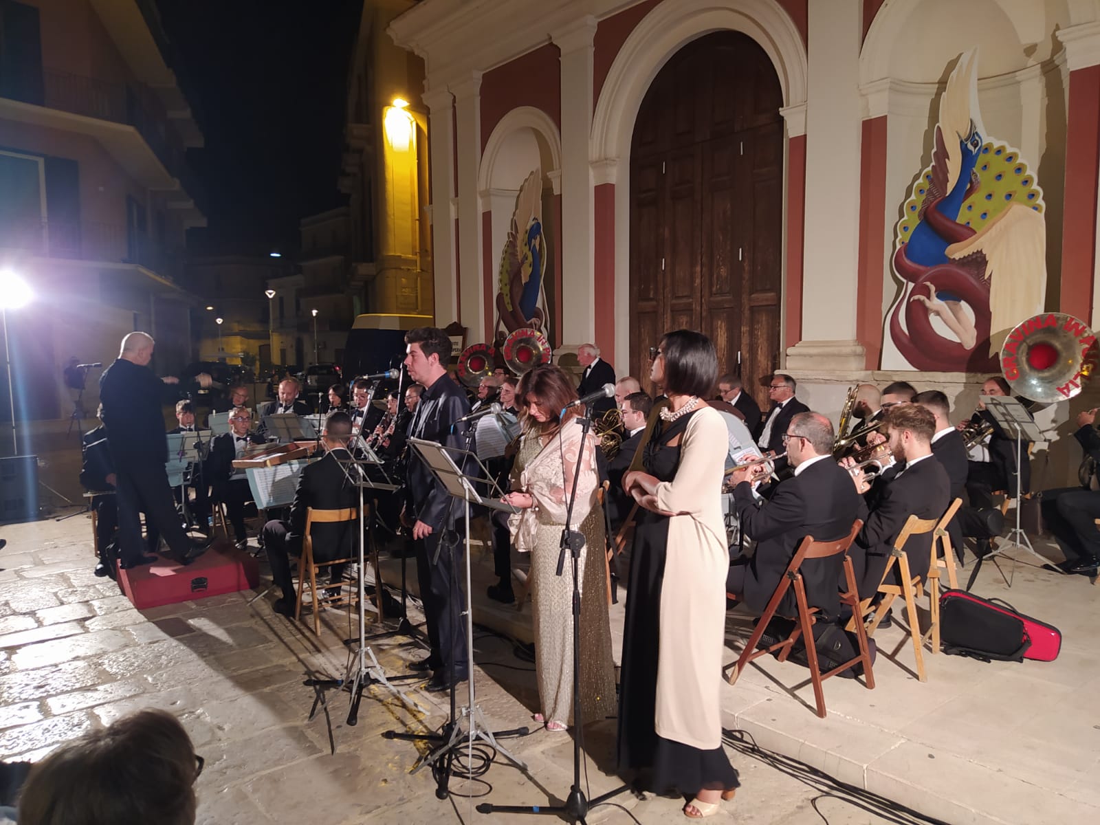 A risuonare in piazza sono state le musiche delle più celebri arie d’opera che hanno segnato la storia della musica (il Nabucco, il Trovatore, la Traviata di Verdi, la Carmen di Bizet, la Turandot di Puccini, il Barbiere di Siviglia di Rossini), ma anche alcune celebri colonne sonore di Ennio Morricone, e poi l’Inno di Mameli e alcuni brani storici della musica classica napoletana magistralmente eseguiti dagli orchestrali impreziositi dalle splendide voci dei soprani, Antonella Miglionico e Angela Lomurno e del baritono Michele Cicala.