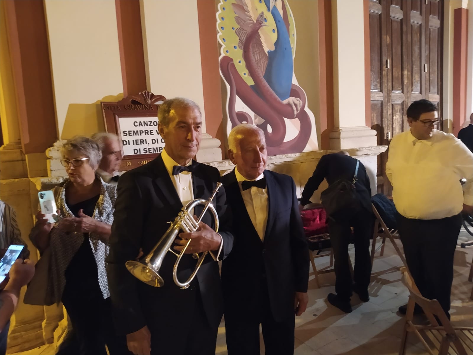 Ospite d’onore della serata è stato il Luogotenente Maestro Domenico Principe che vanta una lunghissima carriera musicale nella prestigiosa Banda dell’Arma dei Carabinieri rappresentante insieme ad altri musicisti coratini presenti, della grande tradizione bandistica della nostra città come ha ricordato il M° Direttore Giuseppe Basile auspicando una sempre maggiore attenzione verso questi eventi. Il successo della serata, d’altra parte, testimonia come nonostante le esigue risorse messe a disposizione, si sia riusciti a realizzare uno spettacolo di qualità che ha catturato l’attenzione del folto pubblico a cui è andato il ringraziamento del Maestro Basile che ha prospettato l’eventuale possibilità di un ritorno in inverno magari all’interno del Teatro Comunale, amministrazione permettendo. Una proposta che ha entusiasmato il pubblico che in coro ha gridato: “Speriamo!”
