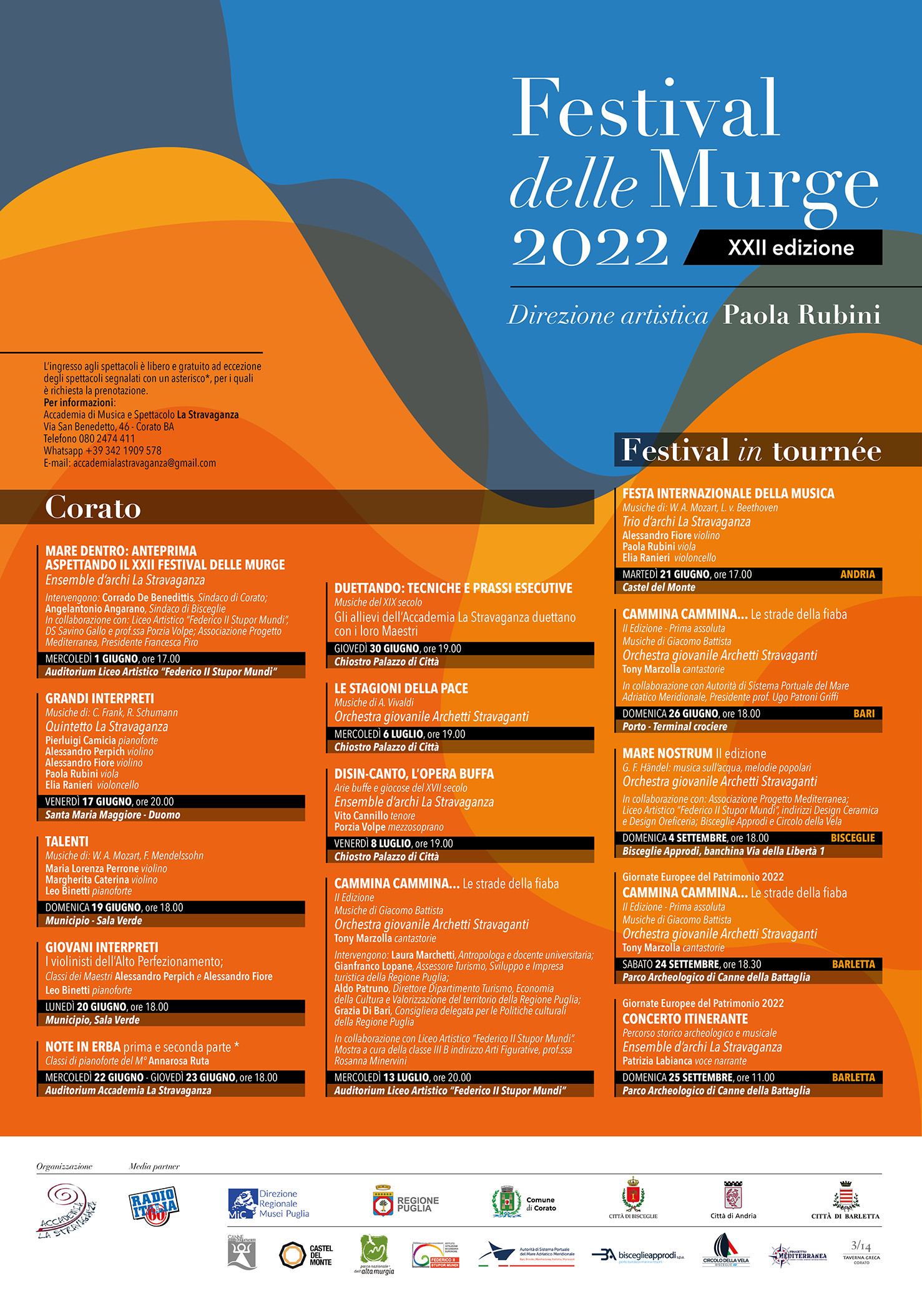Venerdì 17 giugno, con il patrocinio del Comune di Corato e di altre numerose realtà istituzionali del nostro territorio, è al via la XXII edizione del “Festival delle Murge”.