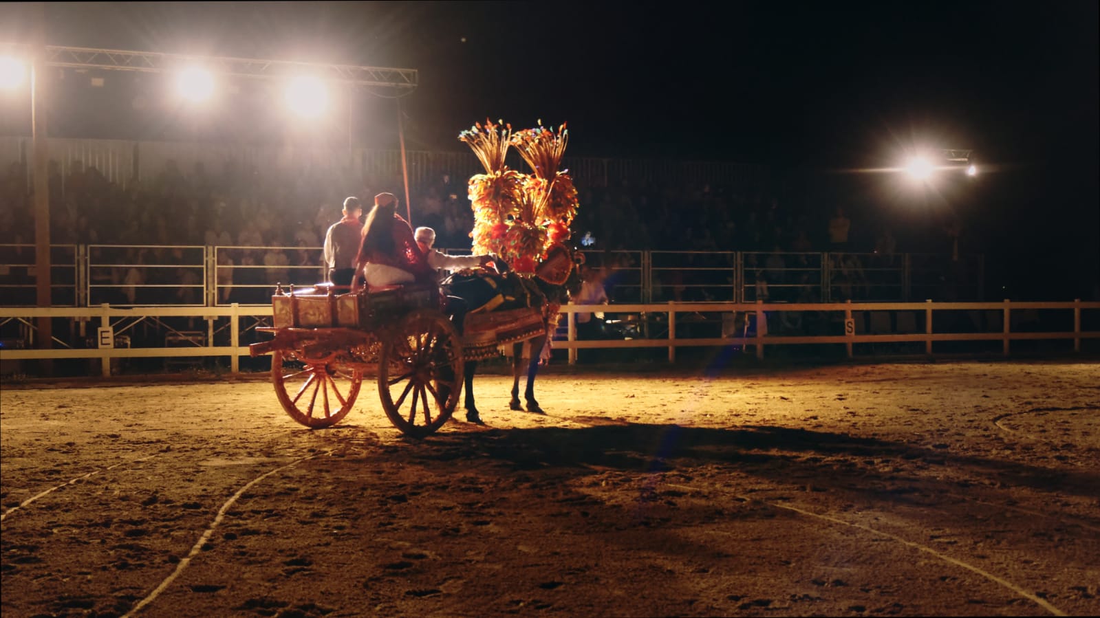 Si arriva dunque al piatto forte della serata, a prendersi la scena è Vincenzo Mangione che, accompagnato da Stefania Tatulli e Biagio Schiavone, sfoggia dinnanzi a tutti il suo carro siciliano trainato dal suo fido destriero murgese Zecchino, bardato accuratamente per l’occasione.