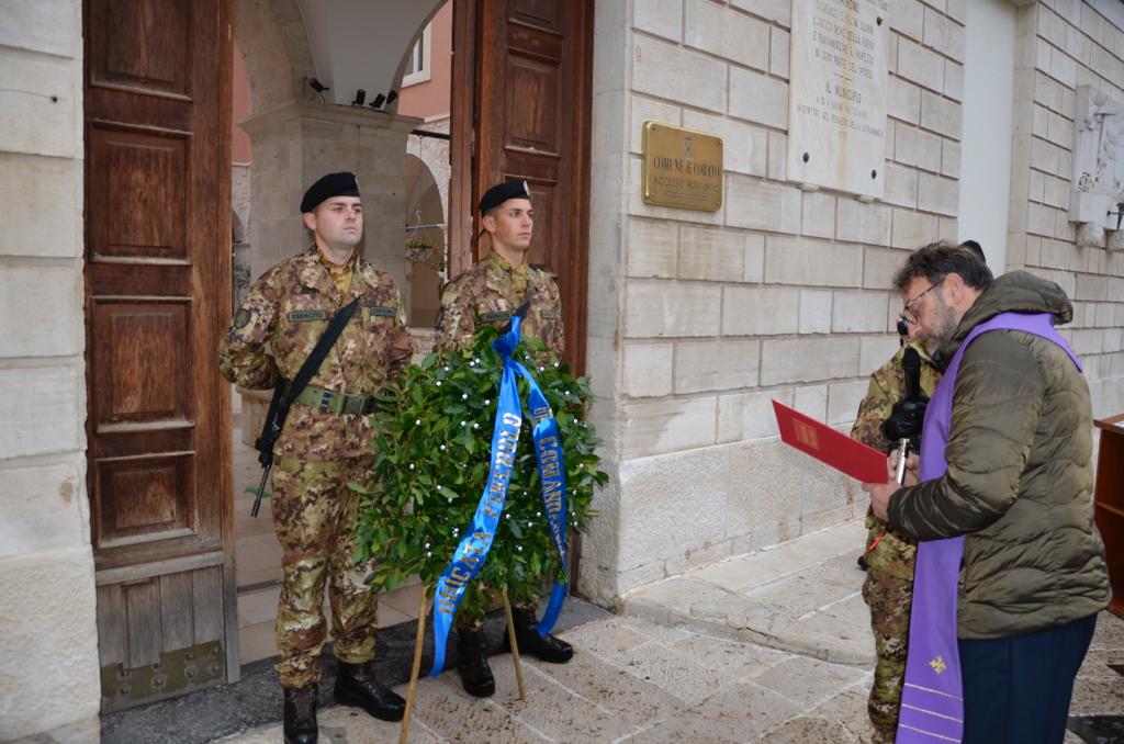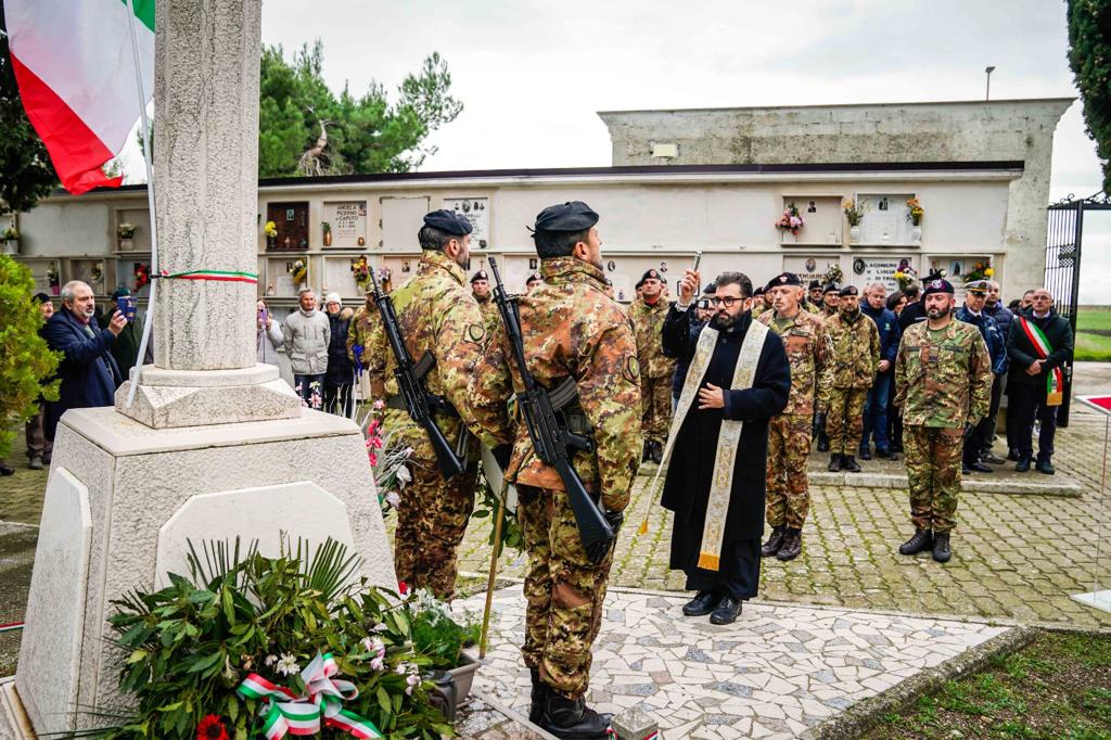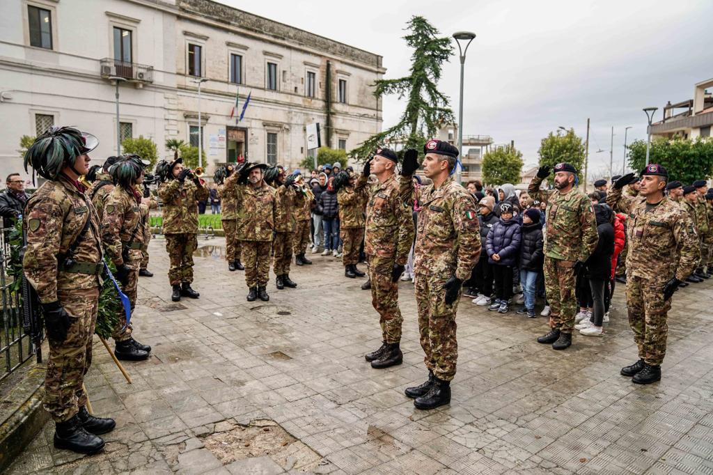Punto di arrivo per tutte le staffette è stato il comune di Poggiorsini dove, preceduti dalla Fanfara del 7° reggimento Bersaglieri , i 60 staffettisti, il Sindaco della Città, il Comandante della Brigata assieme a una rappresentanza di personale della “Pinerolo”, attualmente impegnato in un intenso ciclo addestrativo, hanno deposto un omaggio floreale al Monumento ai Caduti in segno di riconoscenza e ringraziamento.