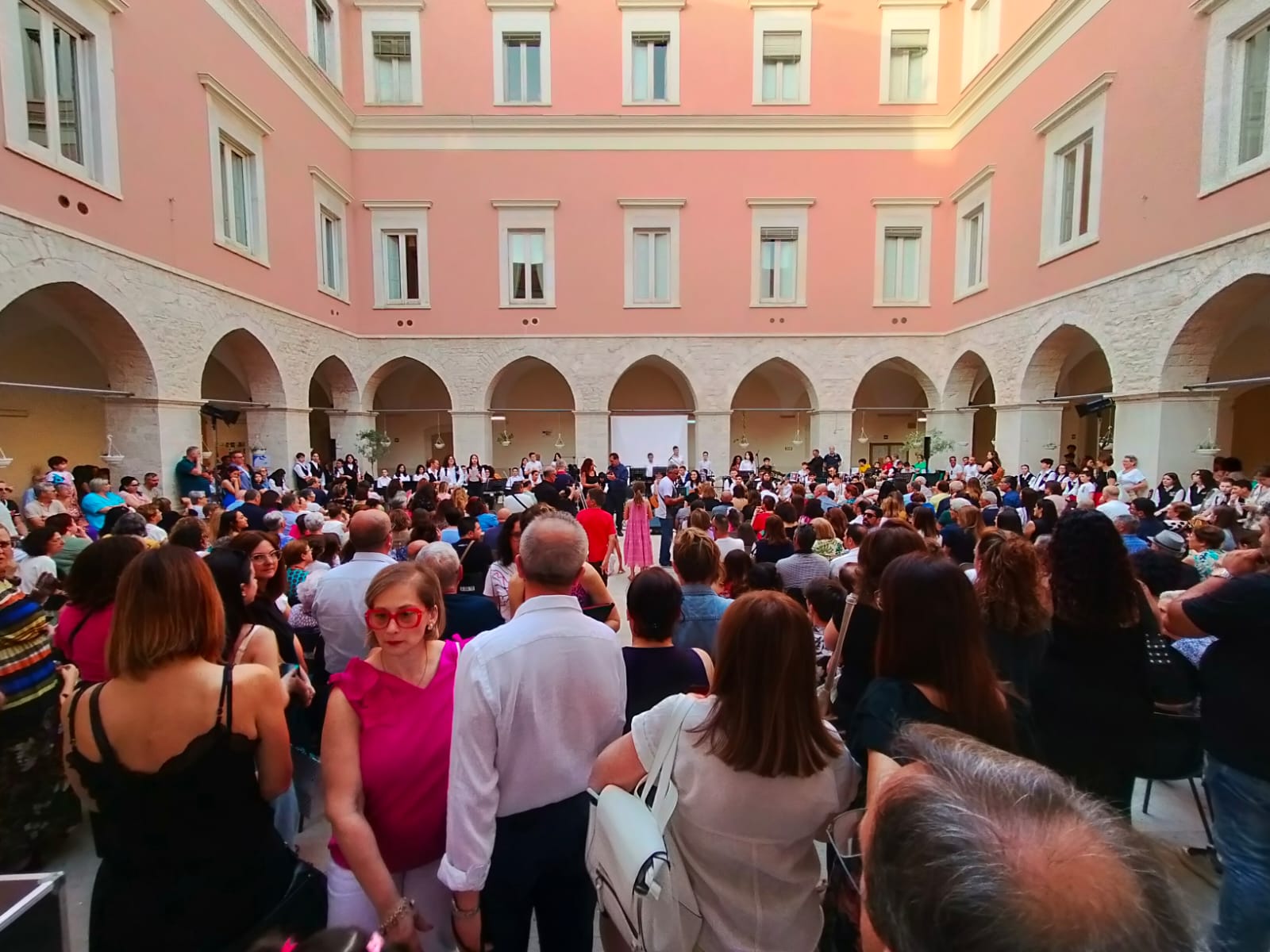 “Portiamo a casa anche questa edizione della festa della musica, con ancora impresse le immagini del chiostro di palazzo di città stracolmo di gente che applaude i musicisti in erba della scuola media De Gasperi. Un bell’esempio di come le realtà scolastiche possano aprirsi al territorio e di come il territorio risponda con entusiasmo” commenta il Presidente della Pro Loco Gerardo Strippoli “Un grande ringraziamento va’ alla Dirigente Scolastica Maria Rosaria De Simone e ai Proff. Curci, Di Tommaso, Salvatorelli e Amato, insieme a tutti i loro alunni e all’Amministrazione Comunale.