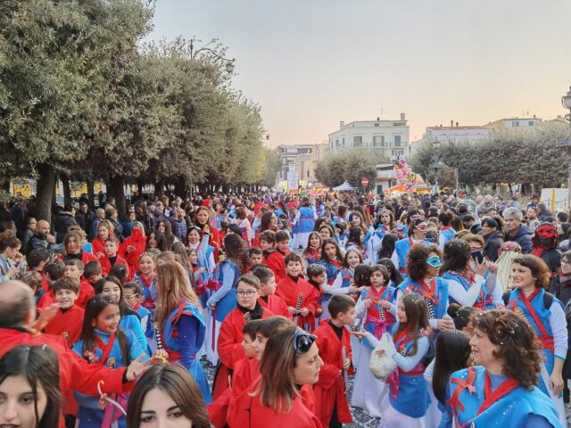 La novità di quest’anno è l’aggiunta di una terza sfilata che si terrà domenica 18 febbraio a partire dalle ore 16:00 con partenza da Piazza Vittorio Emanuele, Corsi cittadini e una grande festa finale in Piazza Cesare Battisti. Al termine delle performance si terrà la proclamazione dei vincitori del concorso mascherato e “La Pegnàte” ovvero l’apertura della pentolaccia in piazza, realizzata dal cartapestaio Francesco Diaferia.