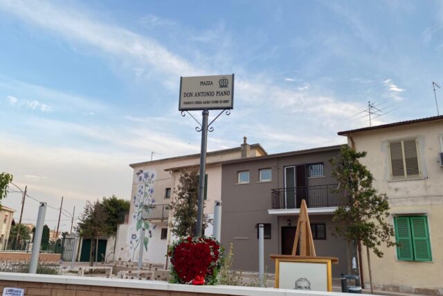 In viale Po, angolo via Belvedere, è stata inaugurata la piazza dedicata a Don Antonio Piano, alla presenza del Sindaco, dell’Amministrazione Comunale, del parroco Don Vito Martinelli, del Comitato Cittadino e dell’Arcivescovo Monsignor Leonardo D’Ascienzo.