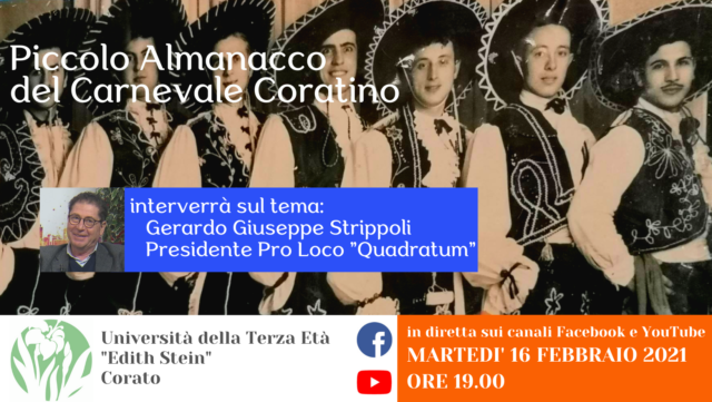 L’Università della Terza Età “Edith Stein” presenta un nuovo evento on-line: “Piccolo Almanacco del Carnevale Coratino“.