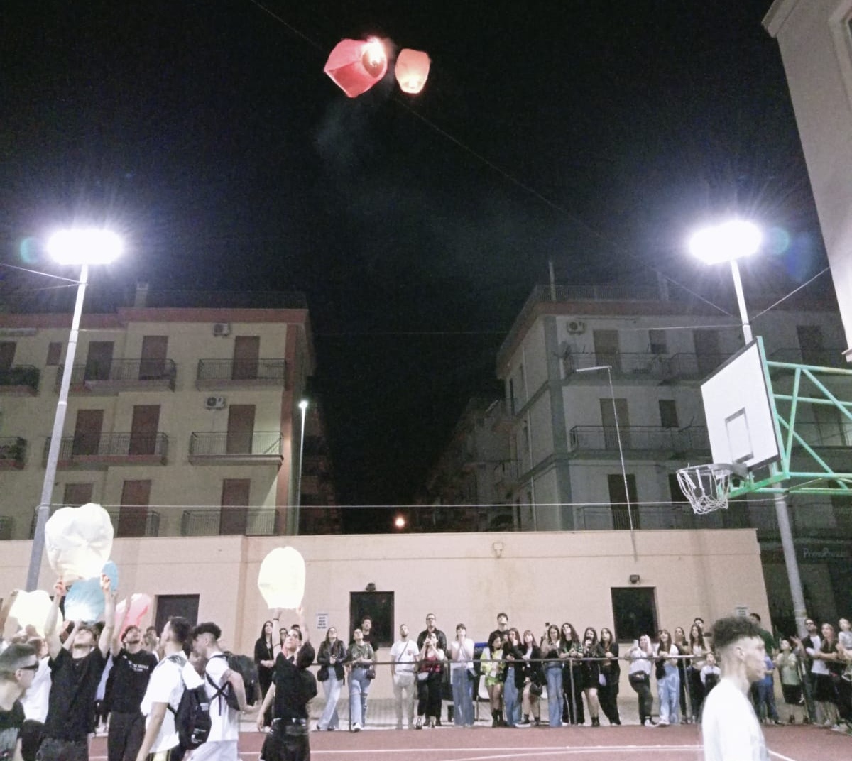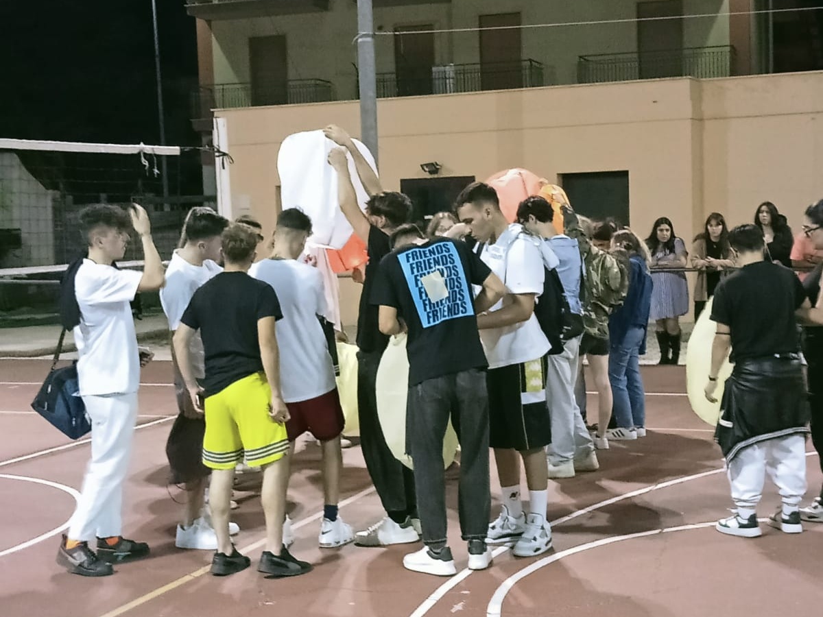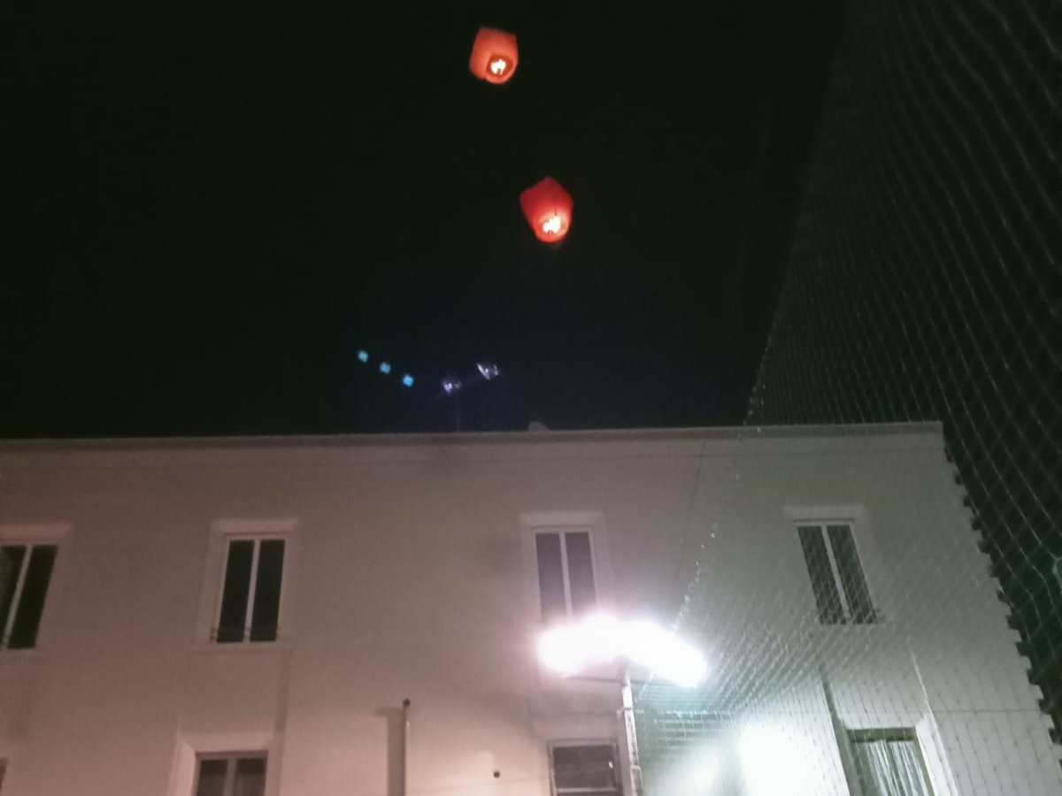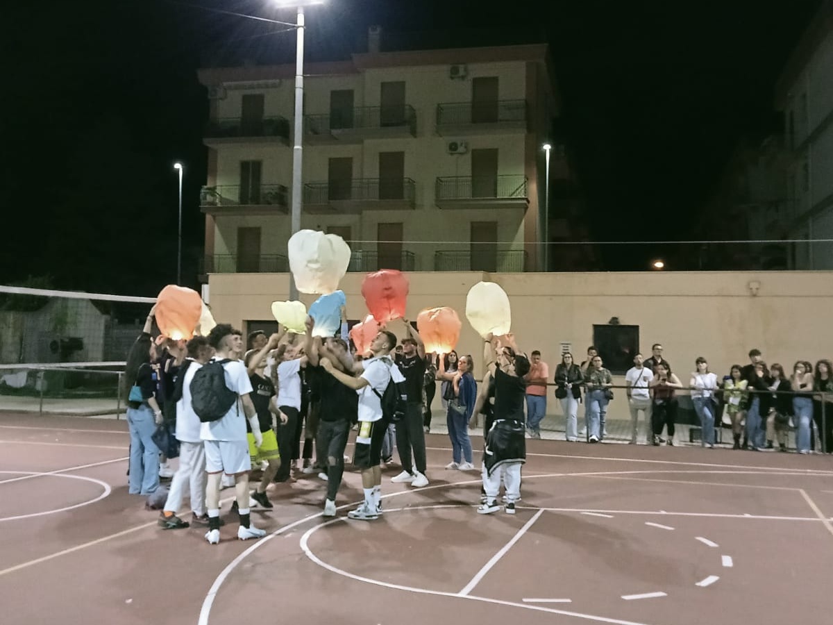 Una sfilata con uno striscione inneggiante “buon viaggio Gabriel”, accompagnato, dopo un toccante minuto di raccoglimento, virtualmente da palloncini bianchi ad elio, con piccole lucine all’interno, fatti volare con varie lanternine colorate, l’ultima delle quali, ironia del destino, non si è voluta distaccare da terra, segnale di attaccamento ai suoi cari ed ai valori che la sua famiglia gli aveva trasmesso.