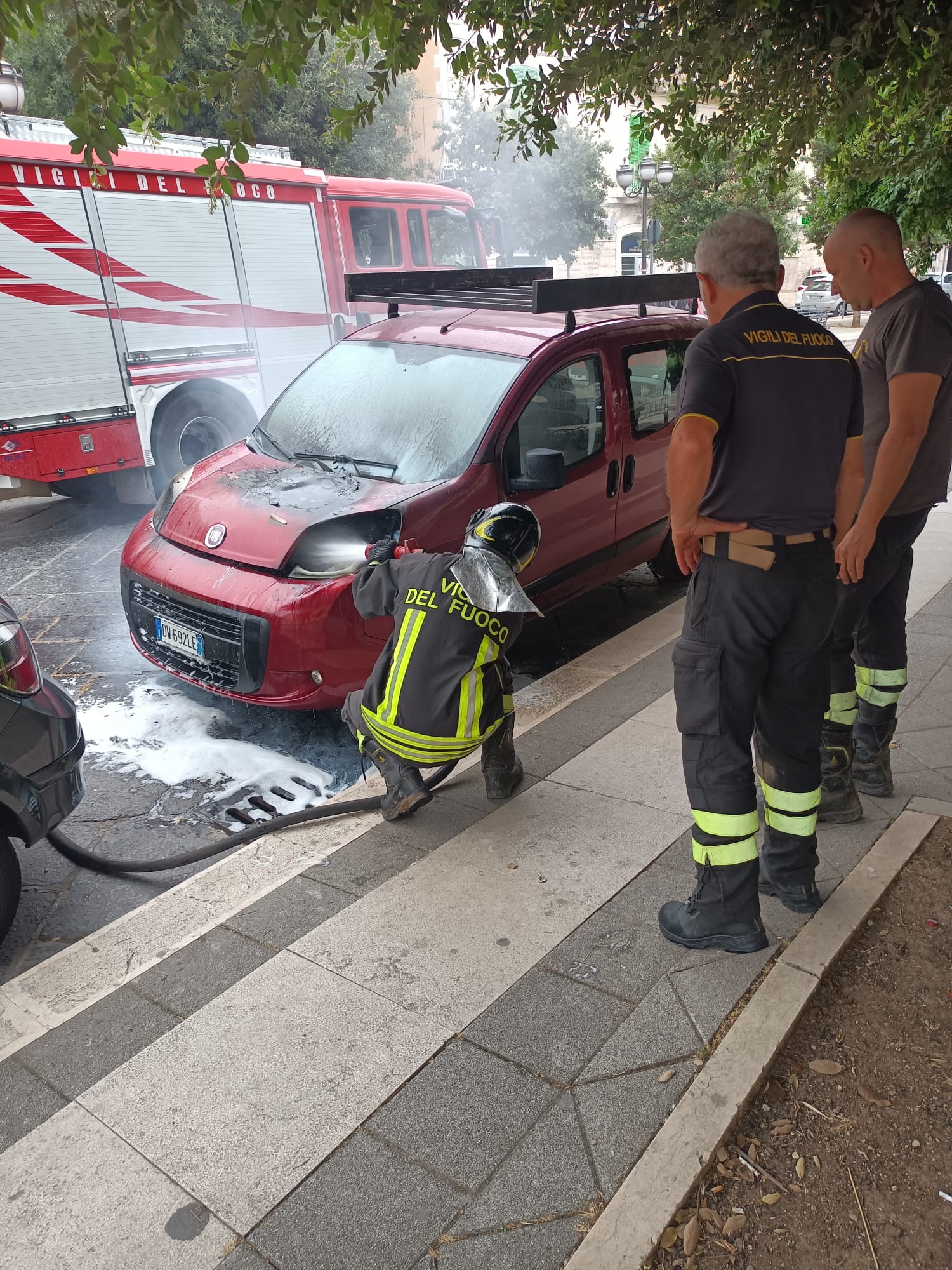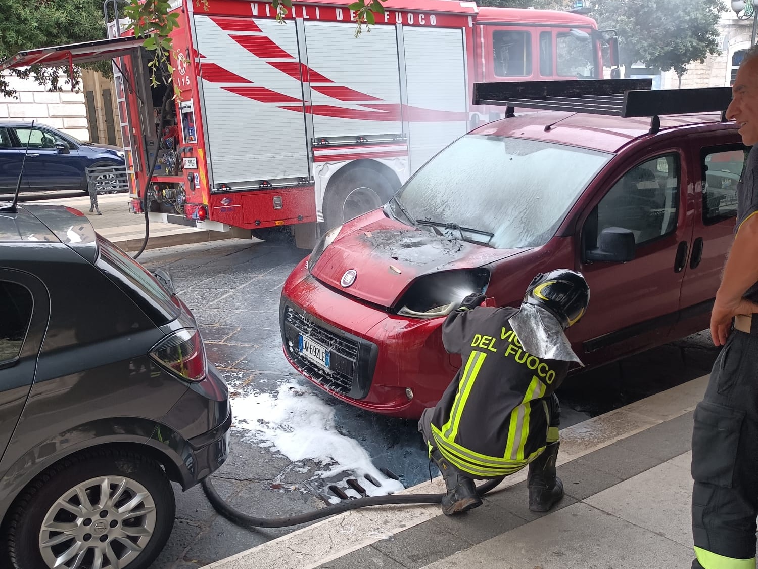 L’auto, un Fiat Fiorino, era parcheggiata su corso Mazzini, quando ha iniziato a prendere fuoco.