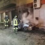L’incendio ha provocato danni agli ingressi laterali del bar vicino cui l’auto era parcheggiata.