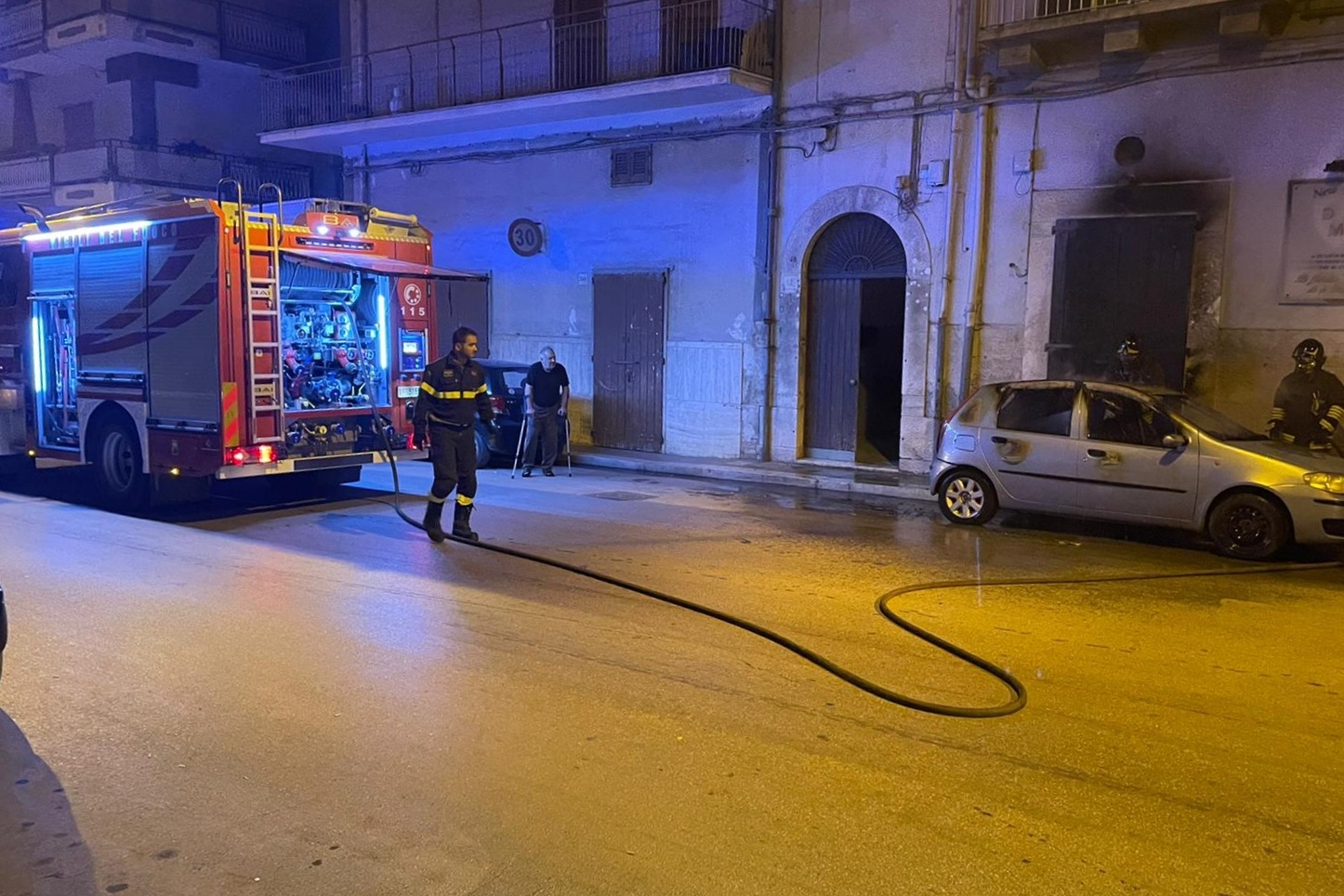 L’incendio ai danni di una Fiat Punto si è consumato in via Don Minzoni, le fiamme hanno danneggiato l’ingresso di un’attività commerciale vicino cui l’auto era parcheggiata.