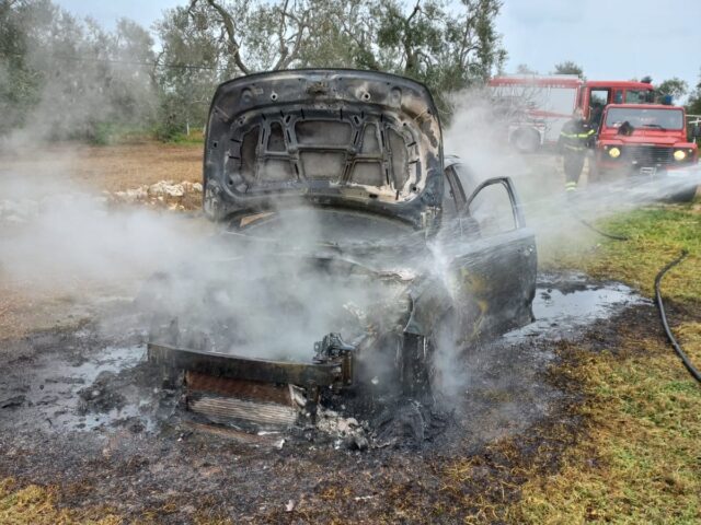 Un auto, una Hyundai, è andata in fiamme questa mattina, intorno alle 10,30, nella zona Fondo Griffi nei pressi di via vecchia Bisceglie.