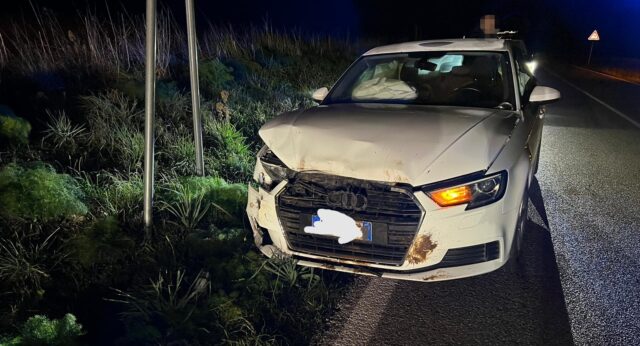 Invano per il conducente il tentativo di frenare il veicolo per evitare l’impatto con l’animale che si è trascinato per qualche decina di metri sull’asfalto.