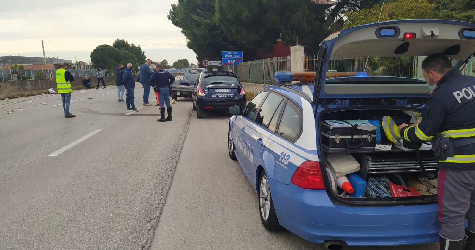 Sul posto sono intervenuti il 118, la Polizia di Stato di Corato, la Metronotte e la Polizia locale. Il traffico è al momento deviato.