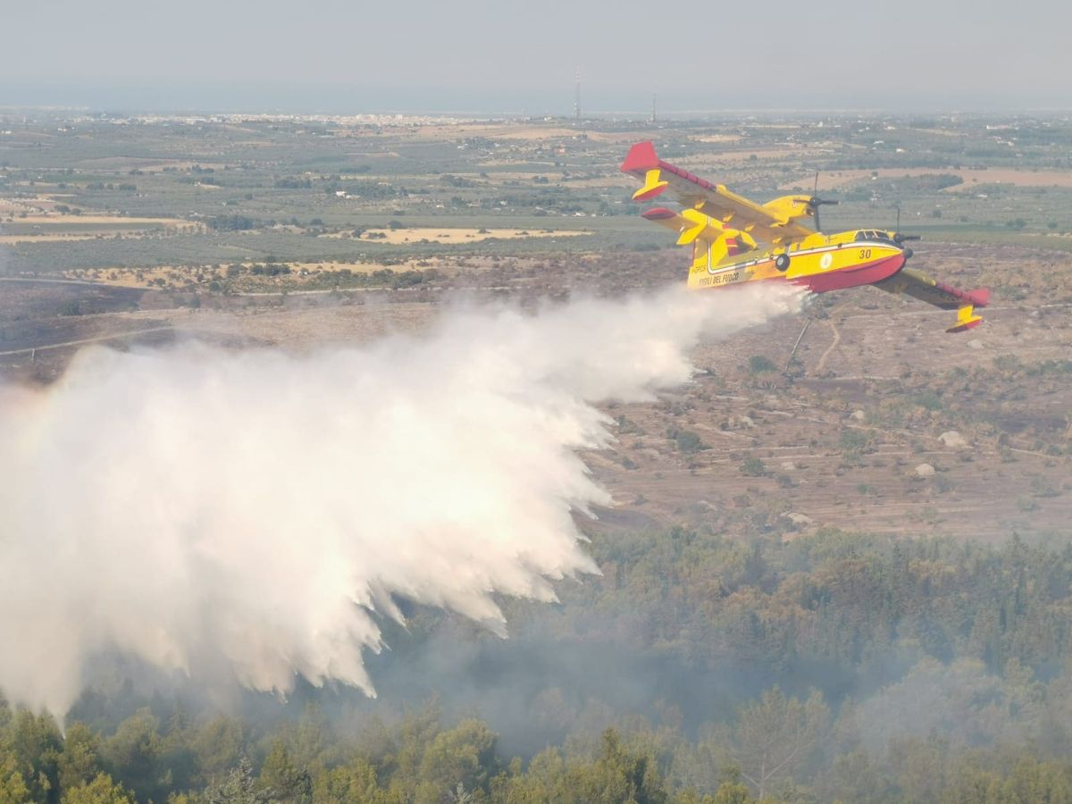 Nel primo pomeriggio di ieri un vasto incendio ha colpito il bosco che circonda Castel del Monte, sviluppandosi in direzione di Andria. È il sesto focolaio nelle ultime settimane, tuttavia quello di ieri – più grave e presumibilmente di natura dolosa – ha richiesto l’intervento di due Canadair e comportato l’evacuazione del Castello, avvenuta in modo rapido grazie al supporto delle associazioni di volontariato. Immediato l’intervento da terra coordinato da Arif Puglia, Vigili del Fuoco e volontari della Protezione Civile, che ha contenuto il propagarsi del fuoco evitando che l’incendio diventasse di chioma. Sul posto il presidente del Parco Francesco Tarantini, il sindaco di Andria Giovanna Bruno e i Carabinieri Forestali con il comandante Giuliano Palomba.
