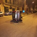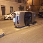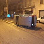 In viale Vittorio Veneto, angolo via San Vito, una Fiat Panda, si è ribaltata su un fianco.