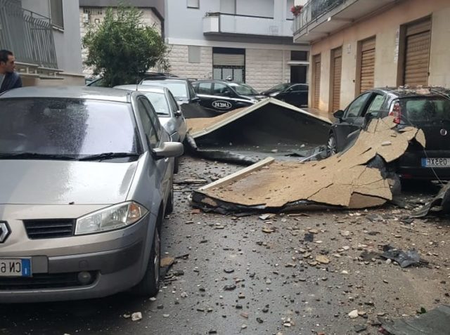 Questa mattina intorno alle 8,30 in via Picca a causa del forte vento un gazebo posto sul terrazzo di uno stabile è volato finendo contro un altro palazzo vicino e sulle auto sottostanti oltre a tranciare le condotte del gas.
