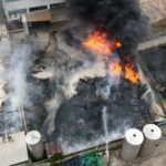 Una grossa colonna di fumo nero si è sollevata sulla città a causa di un incendio che si è sviluppato nel pomeriggio in un’azienda ortofrutticola nei pressi della ex SS 98.