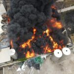La situazione si presenta estremamente rischiosa per la vicinanza di un distributore di carburanti.