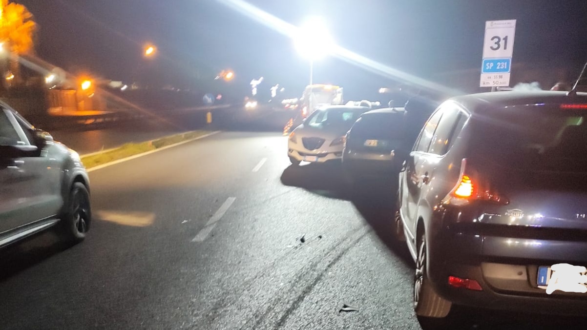 Un tamponamento a catena si è verificato sulla sp 231 in direzione Bari all’altezza di Strippoli mobili. Coinvolte tre auto.