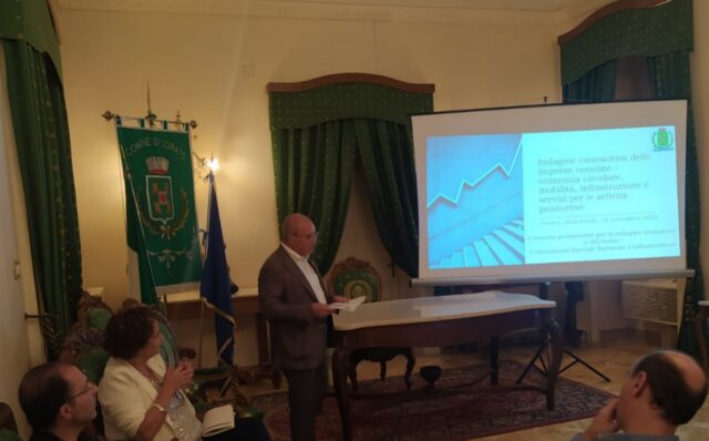 Ieri, lunedì 19 settembre, nella Sala Verde del Palazzo di Città si è tenuta una Conferenza Stampa di presentazione del questionario “Indagine conoscitiva per le imprese coratine, mobilità, infrastrutture e servizi per le attività produttive”, organizzata e promossa dalla Consulta Sviluppo Economico del Comune di Corato (organo democratico di confronto e proposta in materia di programmazione economica, formazione professionale e promozione dello sviluppo economico), alla presenza del Sindaco, Corrado De Benedittis, Concetta Bucci, Assessore alle Attività Produttive, Franco Squeo, Presidente della Consulta Sviluppo Economico e della Dott.ssa Annamaria Fiore, segretaria della stessa consulta che ha coordinato l’incontro.