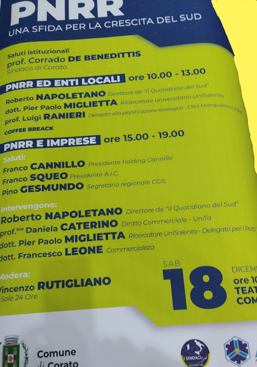 Sembrava tutto pronto per il convegno sul PNRR , importante appuntamento per la città di Corato che si trascina da mesi.