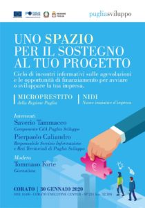 Si discuterà di Nidi (Nuove Iniziative d’Impresa) e Microprestito della Regione Puglia.