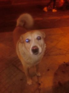 Era impaurito dai botti e cercava protezione, qualcuno temeva la sua vicinanza ma lui non curante lasciò che lo accarezzassi e con quel gesto rassicurante si adagiò vicino a me e rimase lì fermo per tutta la serata.