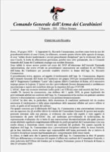 Immediata la nota ufficiale da parte del Comando Generale dell’Arma che respinge con assoluta fermezza le accuse di Casamassima rese peraltro sotto giuramento, definendole “gravissime”. Infine, precisa che anche l’ANAC (Autorità nazionale anticorruzione, ndr) dopo un’accurata istruttoria ha riconosciuto “la piena legittimità dei provvedimenti adottati nei confronti di Casamassima ed escludendo qualsiasi carattere distorsivo o discriminatorio o persecutorio“.