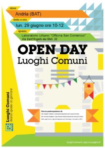 Si terrà il 29 giugno 2020, dalle ore 10.00 alle ore 12.00, l’Open Day dedicato all’illustrazione dell’avviso pubblico regionale Luoghi Comuni e alla presentazione della struttura dell’Officina San Domenico.