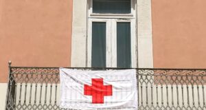 Bandiera della Croce Rossa esposta a Palazzo di Città per la...