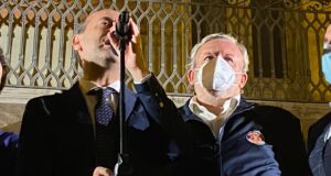 Sulle note di “Bella ciao” si apre il comizio di ringraziamento...