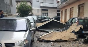 Le raffiche di vento fanno volare un gazebo in via Picca...