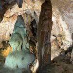 Intorno a noi, stalattiti e stalagmiti disegnano un paesaggio da fiaba: colonne maestose, forme che ricordano drappi e persino un presepe naturale. Non manca la “scultura” più famosa: il bacio tra stalattite e stalagmite, quasi sul punto di toccarsi. E poi quella che sembra una Madonnina, accanto al suo San Giuseppe. La bellezza della natura qui si mescola con l’immaginazione