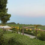 Dalle terrazze, lo sguardo si perde in un panorama maestoso e luminoso: da un lato il verde del Pollino, dall’altro il blu intenso del Golfo di Taranto e la Piana di Sibari.