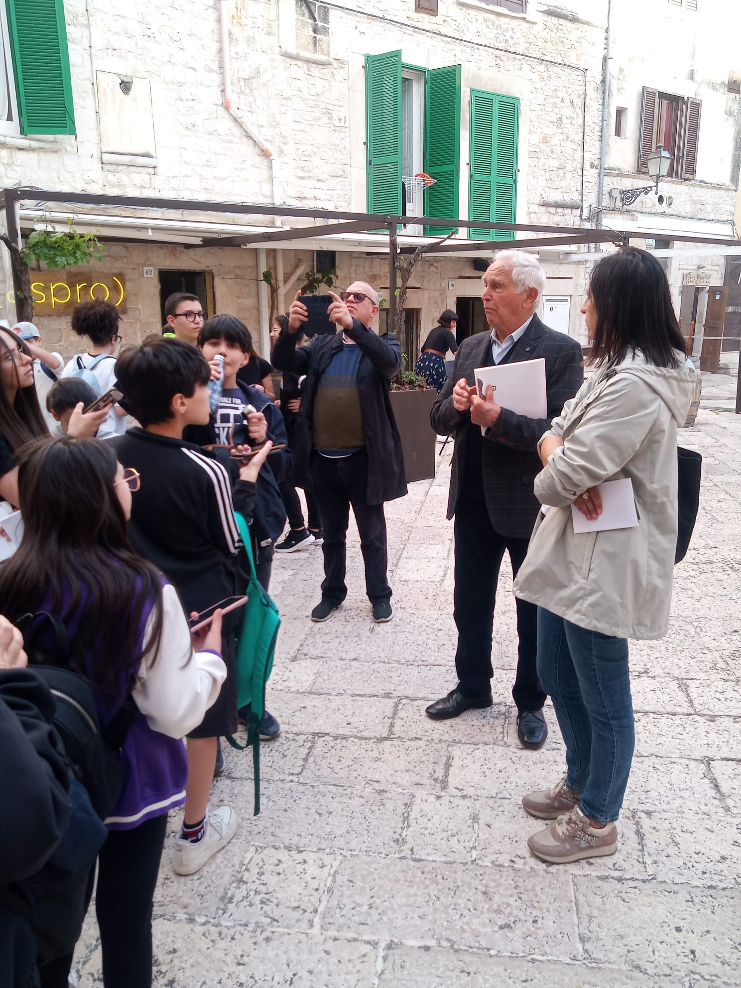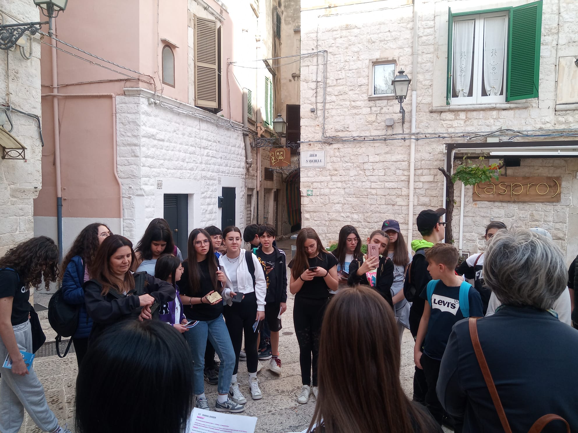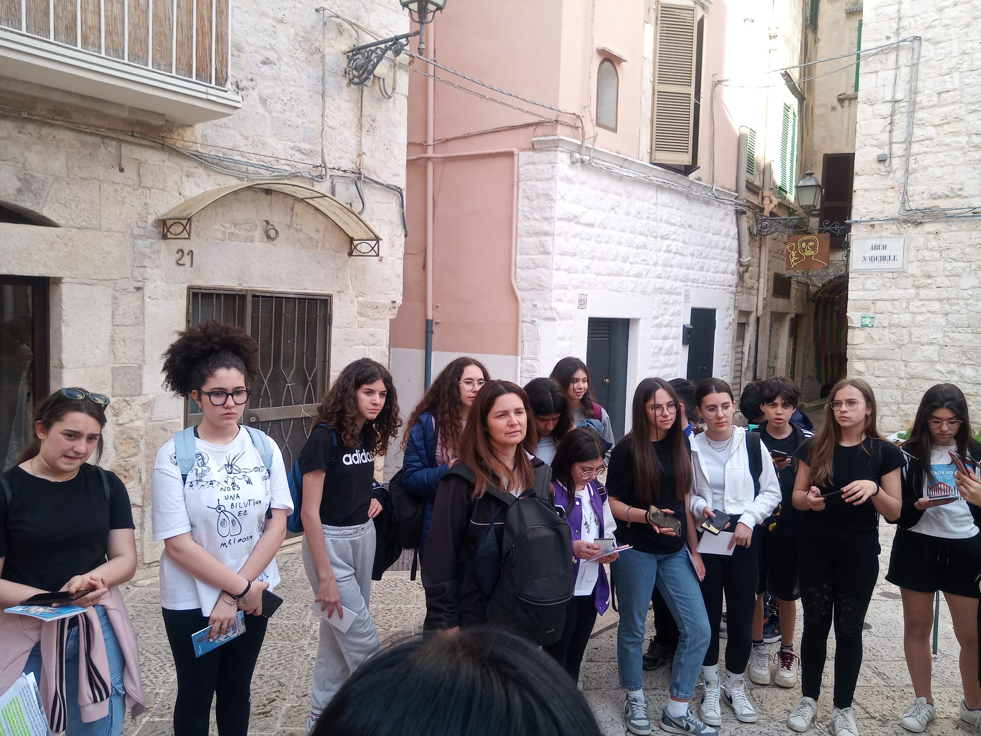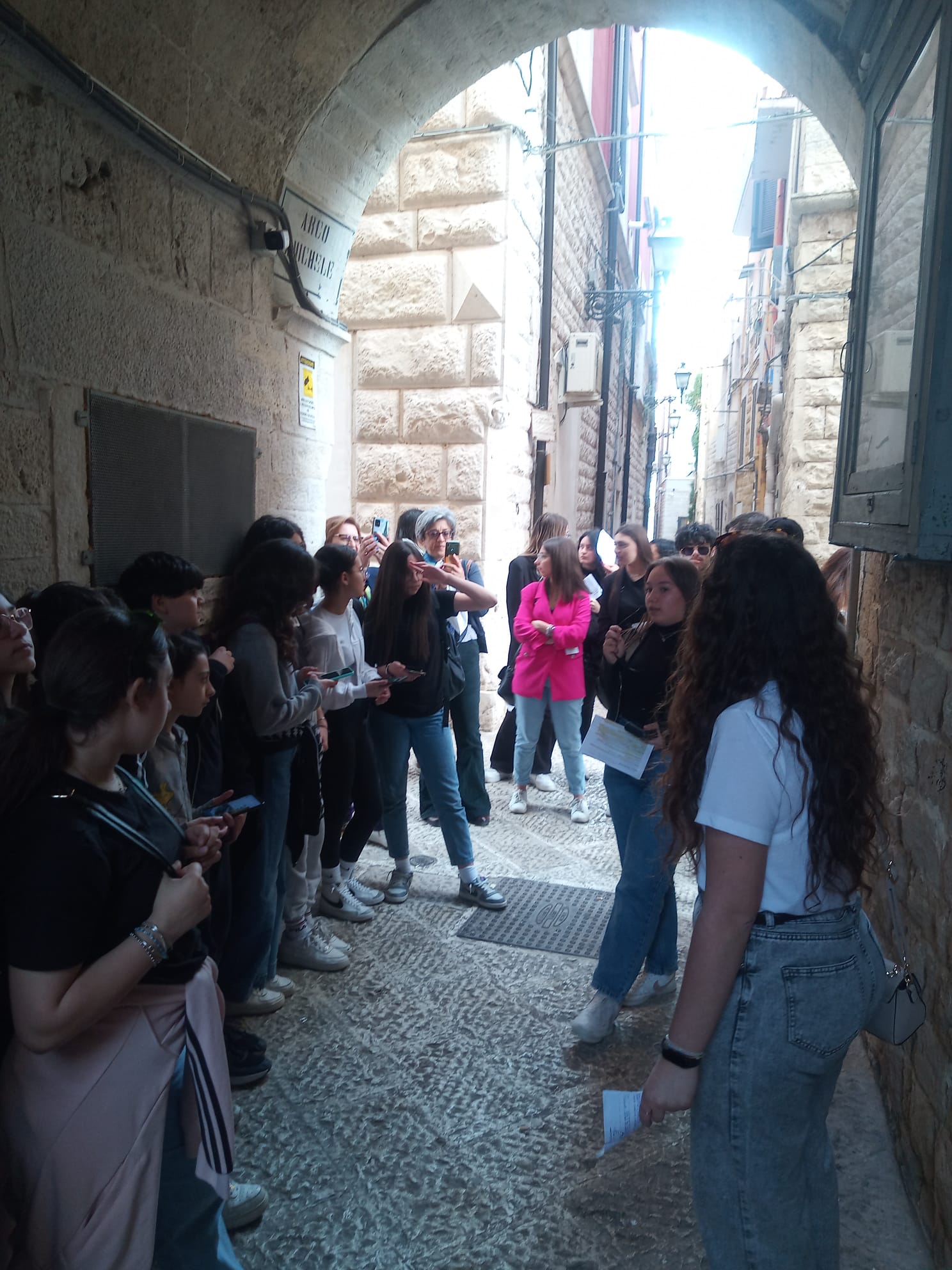 Durante il walking i ragazzi hanno imparato a leggere la segnaletica color marrone che indica luoghi di culto e culturali che li ha condotti dalla periferia di Corato al centro storico, nel quale hanno scoperto l’arco di San Michele, San Cataldo, patrono della città e la chiesa dei Cappuccini. Guidati da Adele Mintrone e dai prof. Rossana Campione e Michele Scarnera, docenti accompagnatori del PON, i discenti hanno ammirato Corato con gli occhi del pellegrino, che cerca punti di riferimento e ha la voglia di portar via, nella testa e nel cuore, ciò che la città trasmette. Grande collaborazione anche da parte degli studenti dell’Istituto Alberghiero “Tandoi” di Corato che hanno reso il servizio di accoglienza con una sana merenda presso l’ Istituto Antoniano, e di guida turistica lungo i vicoli della città, riscoprendo il culto dei Santi e del nostro Patrono San Cataldo