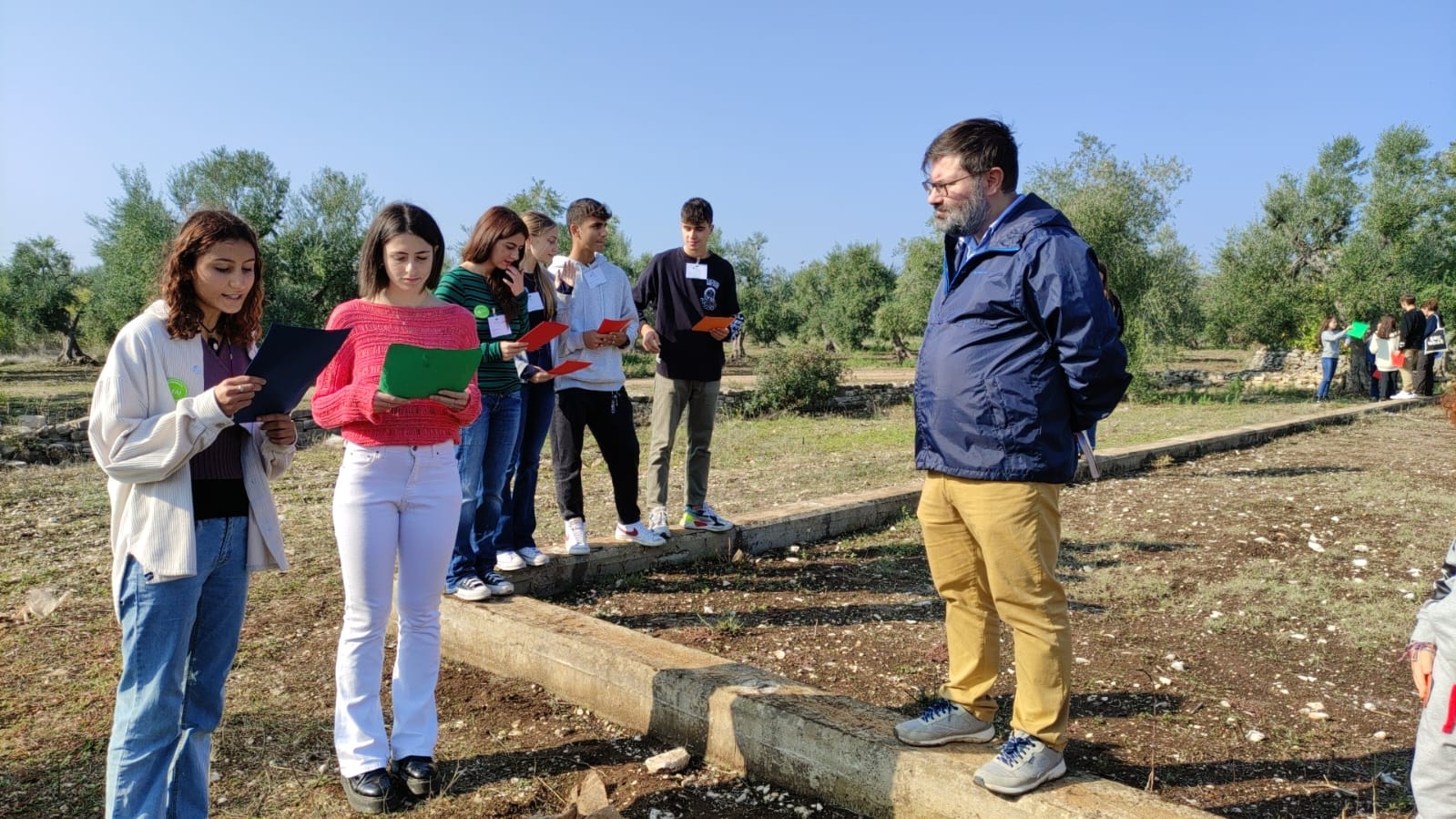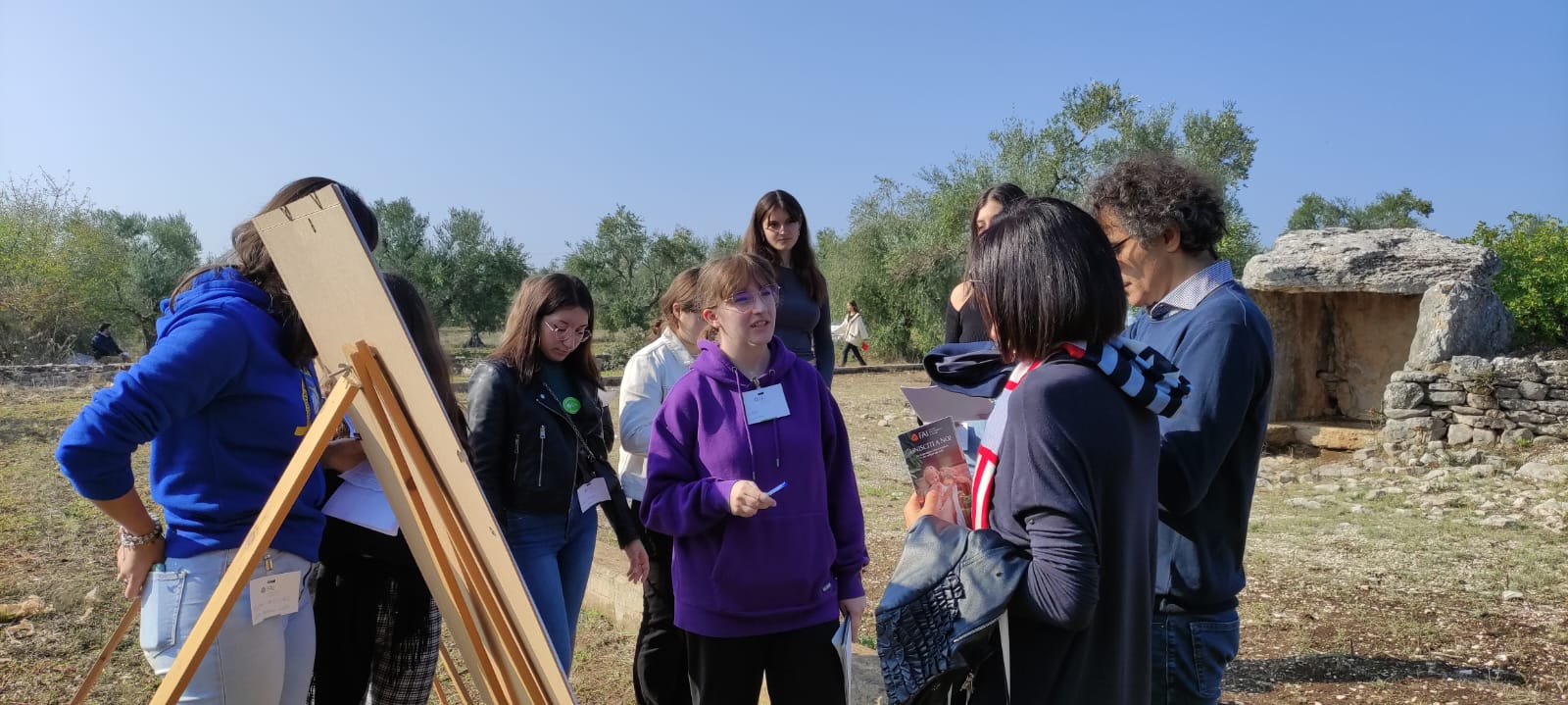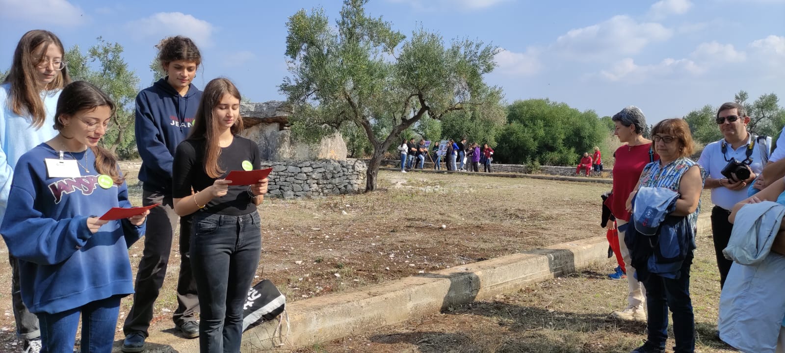 Nei giorni precedenti gli alunni scelti delle classi I e IIA (indirizzo Tradizionale e Comunicazioni ) dell’Oriani e quelli IVF e VF del Tandoi ( indirizzo Enogastronomia ed Ospitalità Alberghiera- Accoglienza Turistica) e IVT e VT del Tannoia (Indirizzo Turismo – sezione di Ruvo), sono stati preparati dall’Archeologo dott. Giuseppe Ruggiero, collaboratore esterno SABAP, che nel 2000 ha condotto una campagna di scavo al Dolmen e dalla prof. ssa Chiara Capozza e la docente di Storia dell’arte del Tannoia e del Tandoi Annamaria Paparella. Durante la conferenza stampa di presentazione dell’evento svoltasi a Palazzo Gioia il 10 c. m. il Sindaco prof. Corrado De Benedittis e l’ assessore alla Qualità Urbana e l’Urbanistica architetto Antonella Varesano hanno annunciato la volontà dell’Amministrazione di valorizzare in futuro il bene archeologico nel suo insieme con fondi che saranno presto destinati al Dolmen e all’area archeologica di San Magno. Il sindaco e l’assessore sabato mattina hanno fatto visita al Dolmen scambiando delle osservazioni con gli alunni.