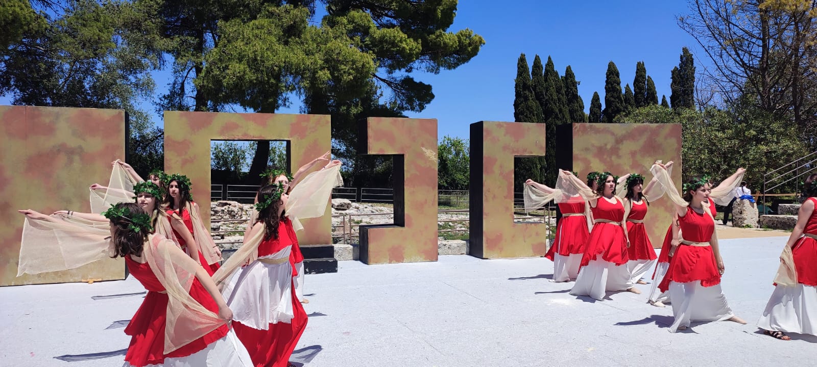 Ogni parola sembra aver preso il suo posto in una sinfonia di dialoghi e suoni che, lì, nel teatro greco, trovano il loro senso.