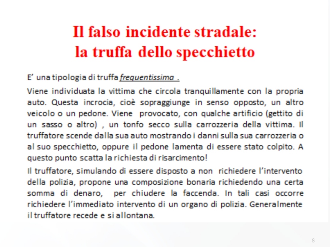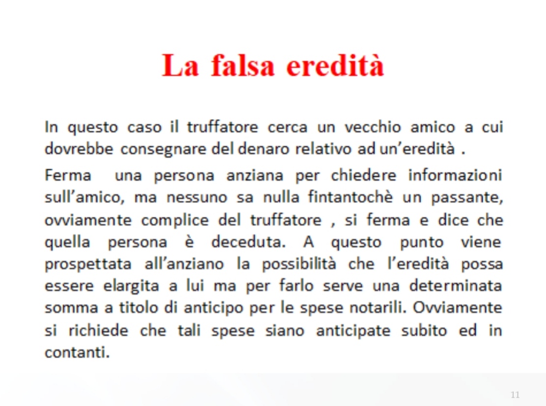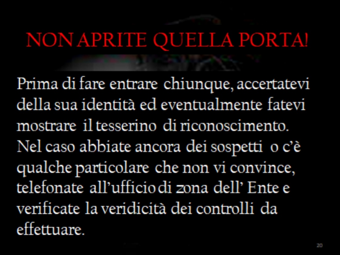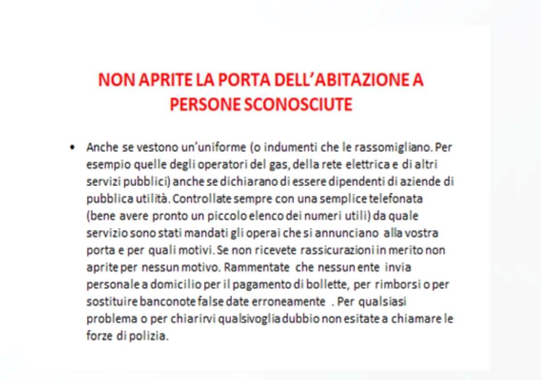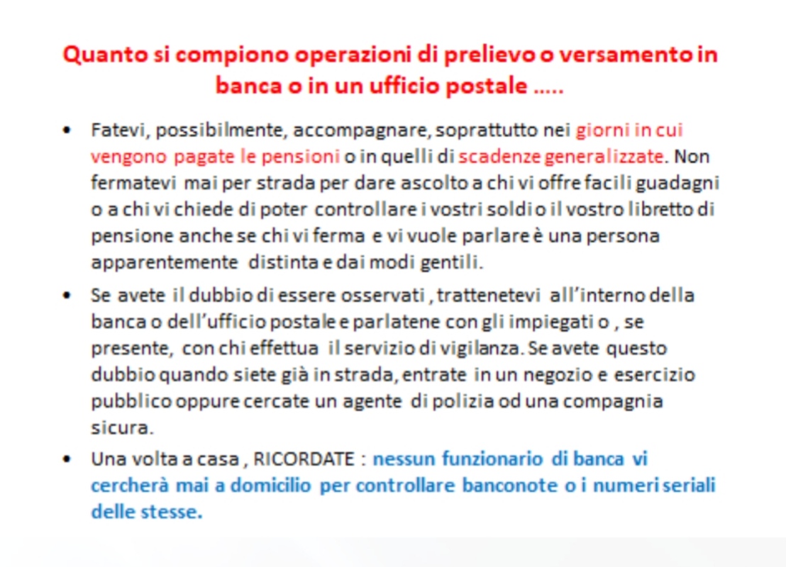 Ieri sera, 11 aprile, presso la sede del Rotary Club di Corato, si è tenuto un validissimo incontro avente come tematica la difesa degli anziani dalle truffe. Relatore principale dell’evento è stato il Comandante della Stazione dei Carabinieri di Corato, luogotenente Francesco Dimiccoli, introdotto dalla presentazione del presidente del Rotary coratino Pasquale Tarricone. Il Comandante, maresciallo Dimiccoli ha dissertato circa le varie casistiche che vedono gli anziani come vittime di raggiri e truffe, elencando svariate tipologie e metodiche dell’azione criminosa,portando esempi tratti dalla cronaca quotidiana ma anche dispensando preziosi consigli per difendersi dal reato in questione , raccomandazioni accolte dal pubblico interessato, con molta attenzione.